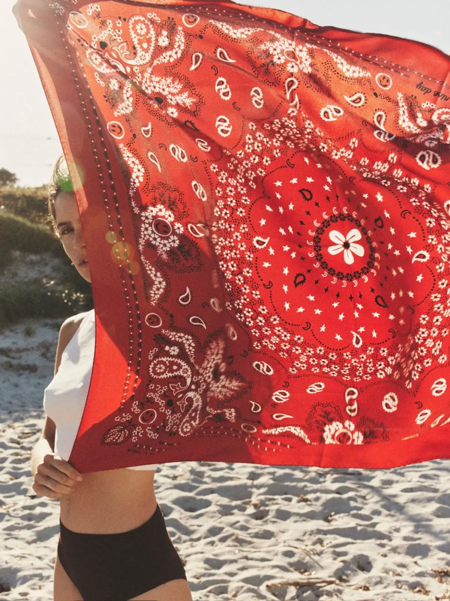 Dans les cheveux, autour du cou, chacun des nouages traduit la personnalité du bandana de soie. Un accessoire simple et moderne !