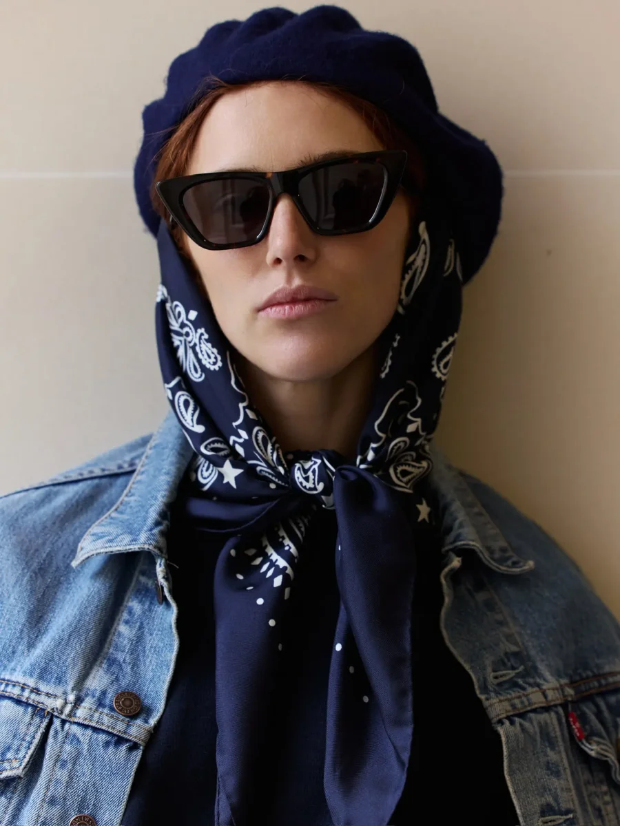 Dans les cheveux, autour du cou, chacun des nouages traduit la personnalité du bandana de soie. Un accessoire simple et moderne !