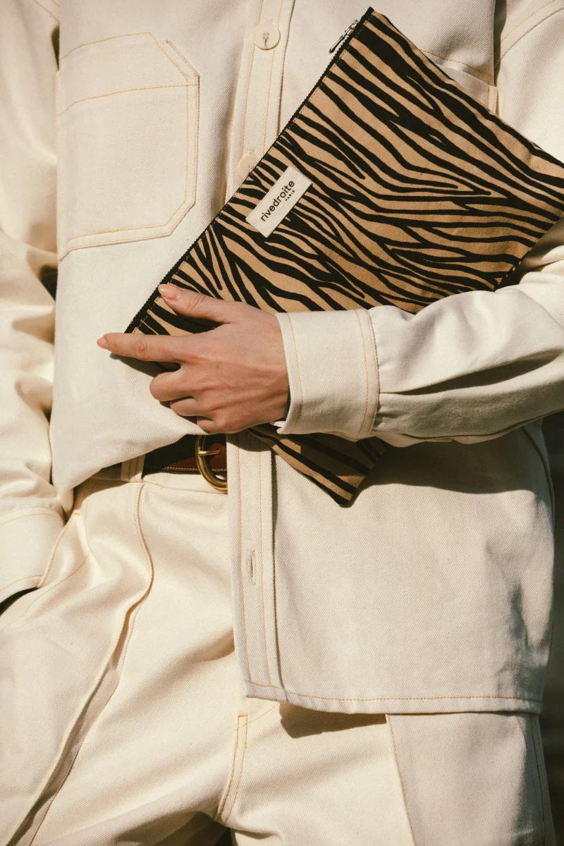 __TAB__ Description Chez Rivedroite, l’imprimé s’affirme avec la collection Wild Tribe, déclinée en deux motifs : Léopard et Zèbre. Ces motifs ont été réalisés par l’artiste française Natacha Paschal. Ces pièces apporteront une touche de caractère à tous vos looks, que ce soit pour vos journées décontractées ou vos moments plus habillés. Une pochette c’est […]