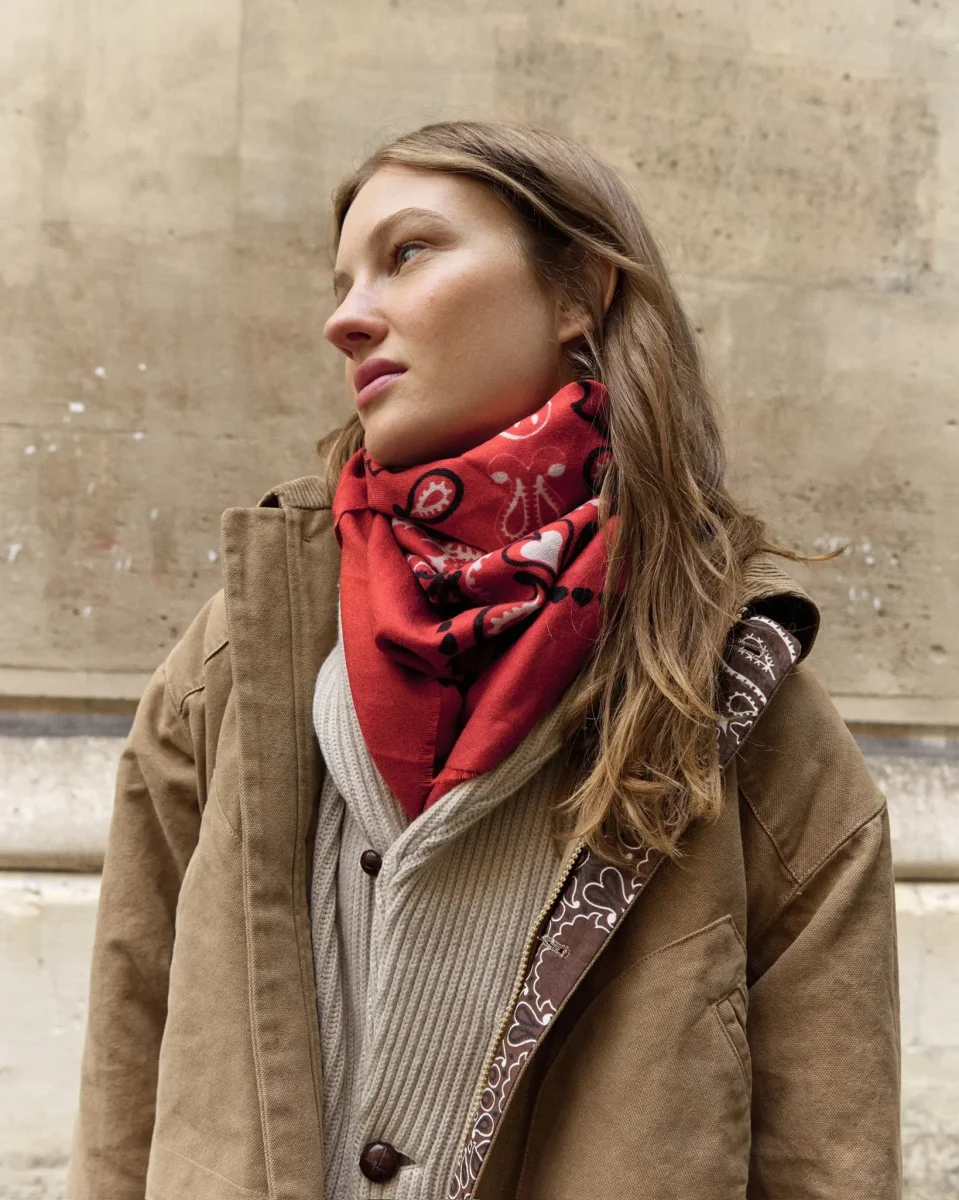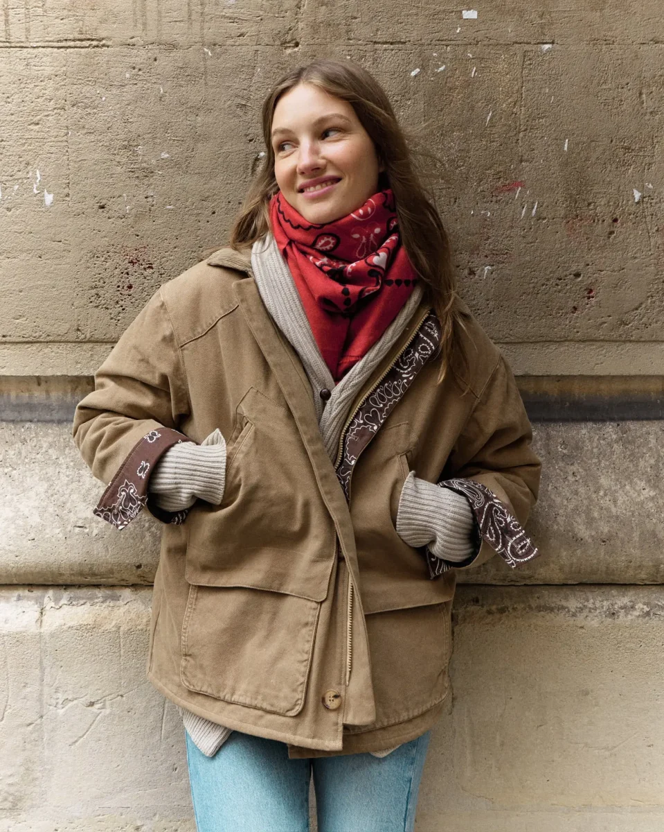 Icône du style casual-chic, cette veste oversize associe coton robuste, col en velours et touches de bandana pour une allure unique.