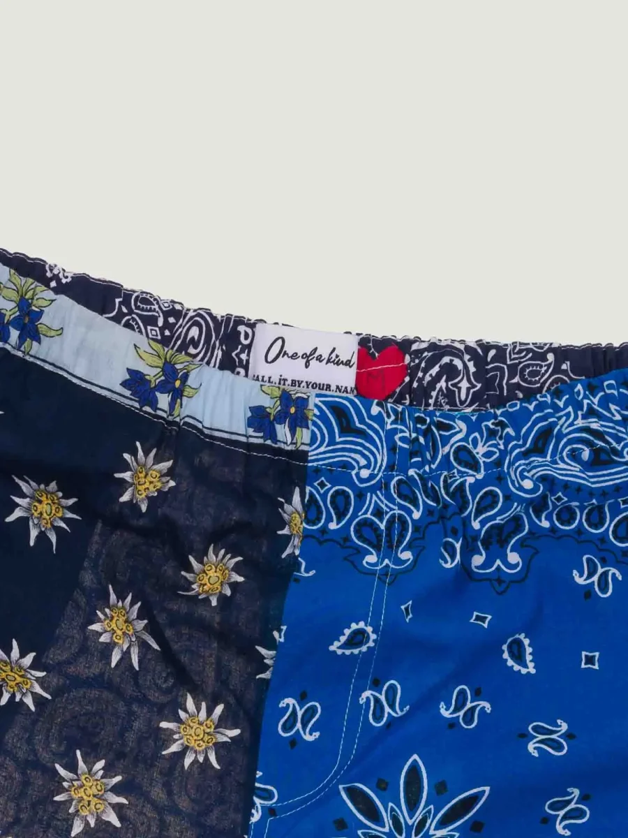 Le Bermuda est le nouvel essentiel de notre collection One of a Kind. C’est un modèle upcycling composé d’un mélange de foulards vintage et de bandanas américains. Avec une chemise ou un tee-shirt simple, il vous accompagnera tout votre été. Chaque pièce est fabriquée à la main à Paris.
