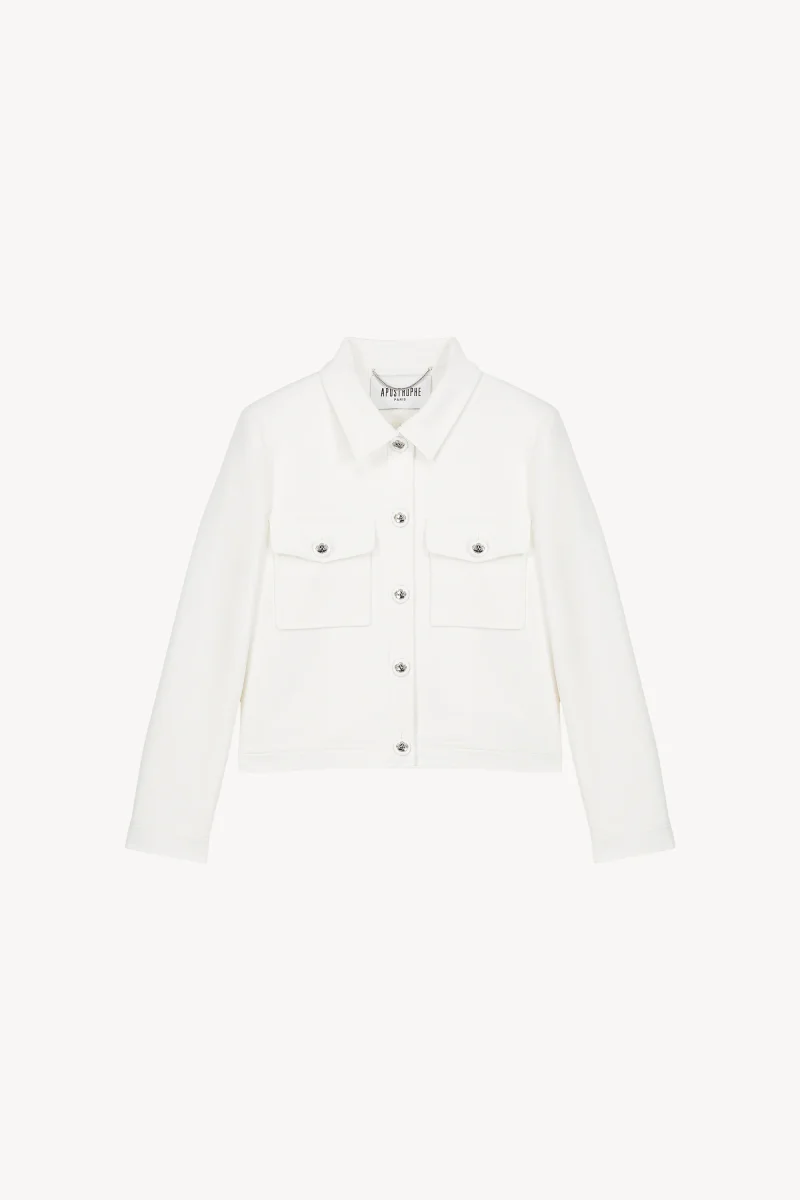 Blouson court à col chemise blanc cassé