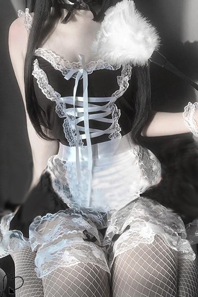 La particularité du Cosplay Maid Sexy réside sur son design dentelle. En effet, la plupart des accessoires dudit Cosplay Maid Sexy sont ornés de dentelle de couleur blanche. En ce qui concerne ledit Cosplay Maid Sexy, il dispose d’une bordure, d’une coiffe, d’un tablier, des gangs, des anneaux de jambes, des manches ajustables, d’un collier et de deux bracelets, tous embellis partiellement ou entièrement d’une dentelle de qualité supérieure.