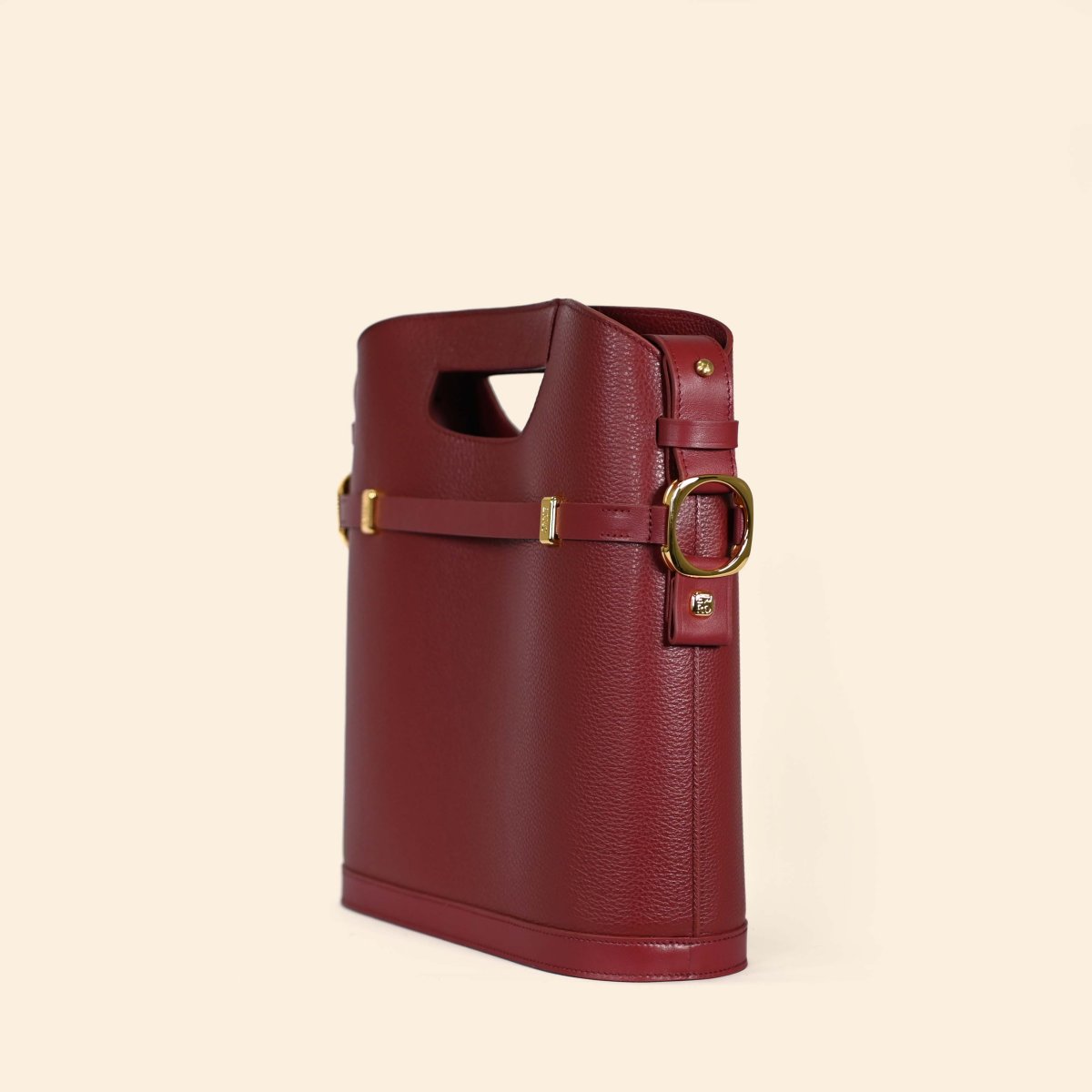 Graphique et audacieux, le ERROLA Carmin est un mini sac portefeuille en cuir pleine fleur, conçu pour vous suivre partout avec discrétion et élégance. Sa teinte rouge intense et sa bouclerie dorée brillante en font une pièce affirmée, à la fois féminine et minimaliste.
