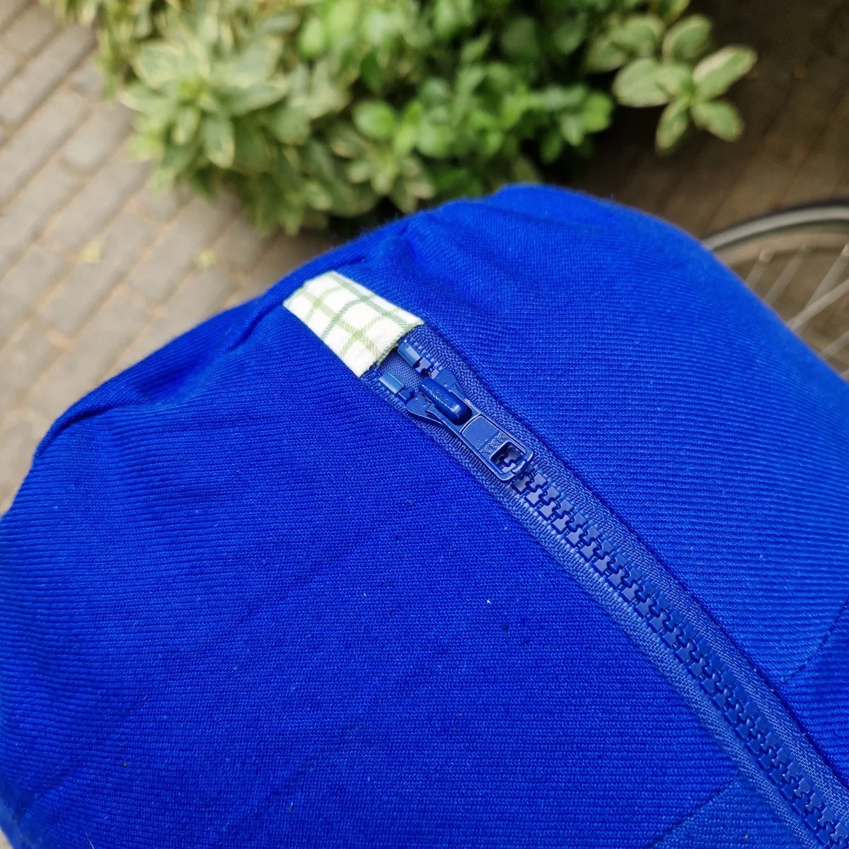Le maxi Sac Bowling Bleu & Anis est un véritable hommage à l’upcycling. Chaque sac est unique, réalisé à partir d’anciens Bleus de travail, ces vêtements de travail emblématiques. Cette démarche permet de donner une seconde vie à ces matériaux robustes, tout en réduisant notre empreinte écologique. La doublure à carreaux anis, issue de linge de maison chiné chez Emmaüs, ajoute une touche de charme vintage à l’ensemble.