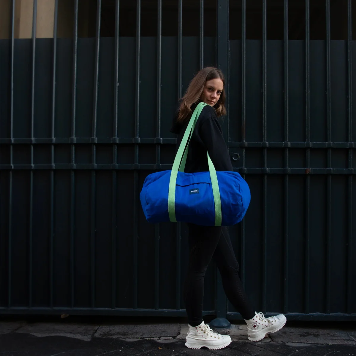 Transportez vos affaires en toute sécurité grâce à la fermeture éclair YKK, synonyme de qualité et de durabilité. Les grandes anses de couleur anis permettent de porter le sac aisément sur l’épaule, libérant ainsi vos mains pour plus de liberté de mouvement. Deux poches extérieures, dont une fermée par un scratch, et une grande poche intérieure facilitent l’organisation de vos objets personnels.