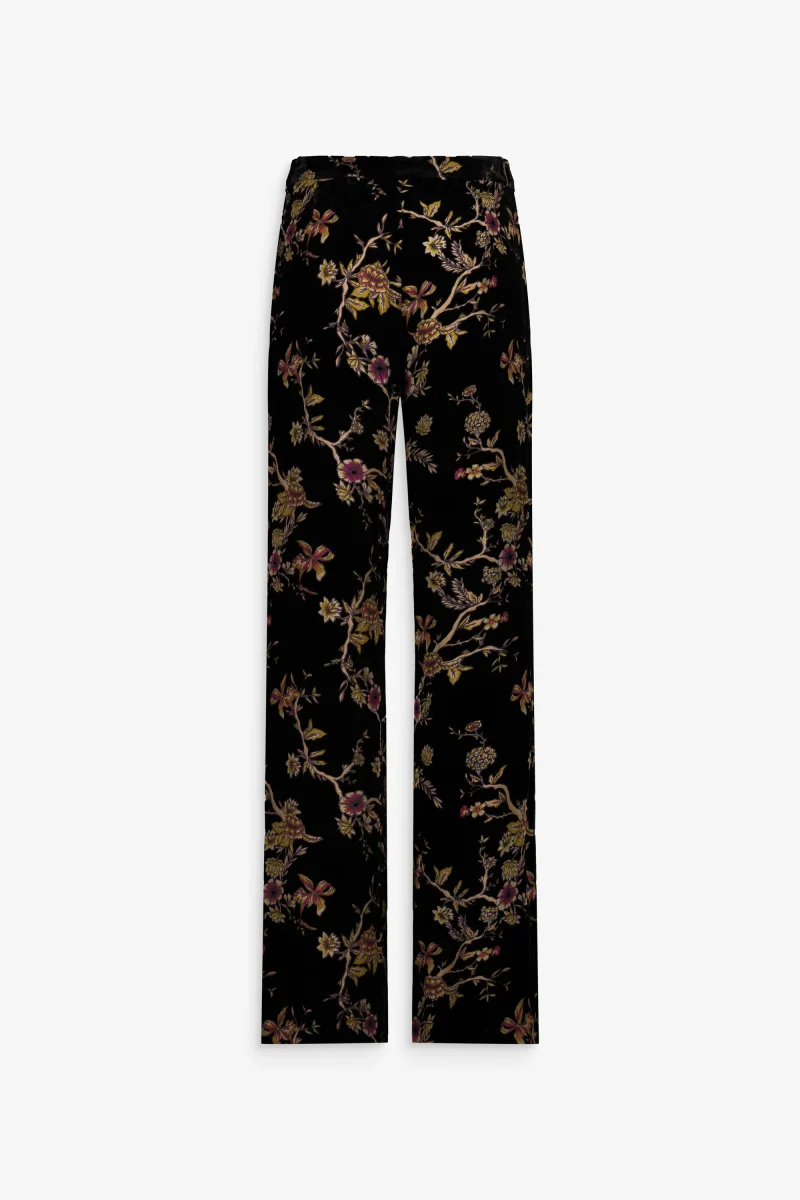 Ce pantalon droit en velours de soie noir dévoile un motif floral discret qui joue avec la lumière. Sa ligne fluide accompagne le mouvement avec naturel, tandis que la texture veloutée apporte profondeur et finesse. Une pièce à la fois singulière et intemporelle, idéale pour composer un ensemble ou pour rehausser un look plus sobre.