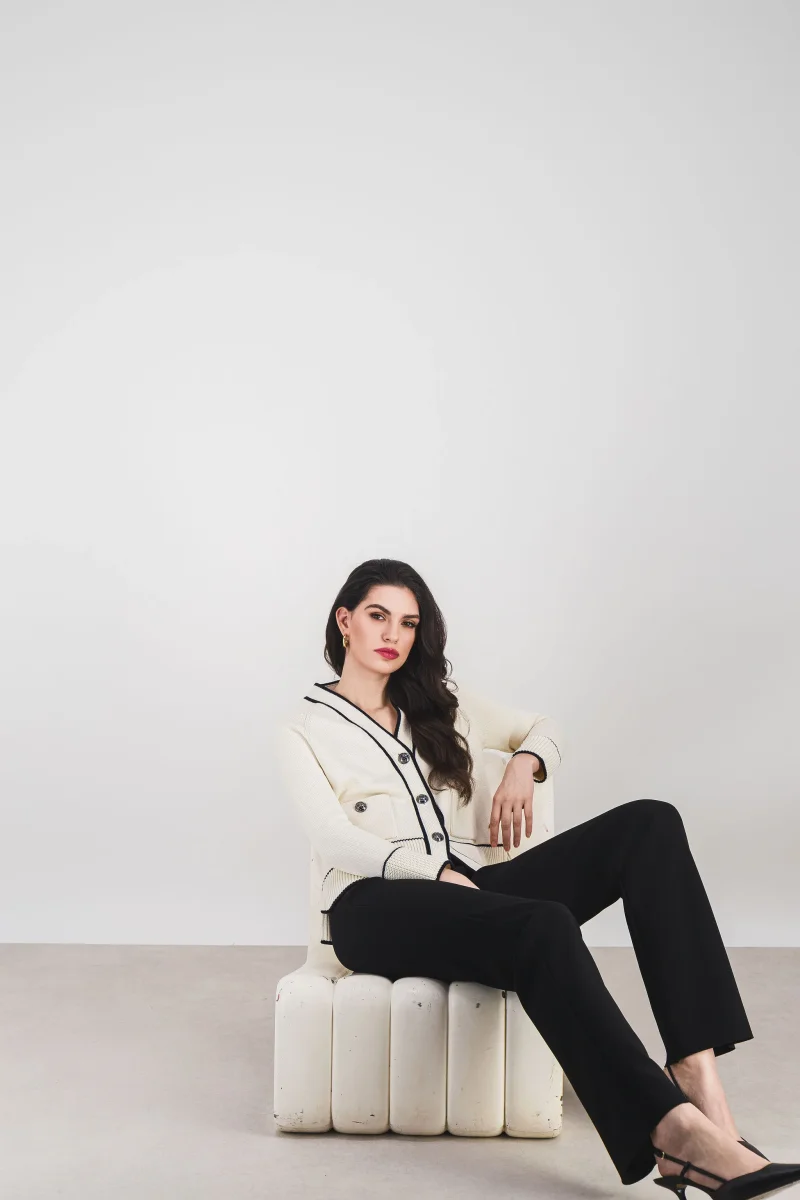 Elégant et intemporel, ce pantalon noir en crêpe se distingue par sa coupe droite et son allure moderne. Conçu avec un élastique à la taille, il allie style et praticité pour des looks polyvalents.