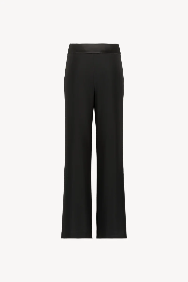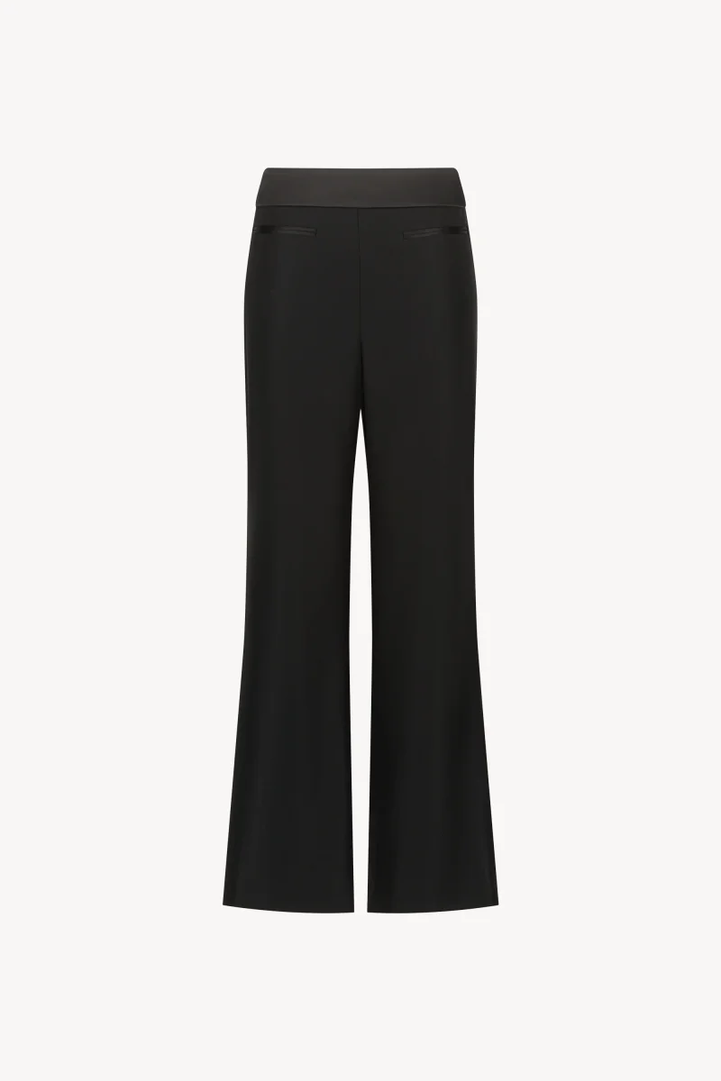 Ce pantalon évasé noir combine élégance et modernité, rehaussé de détails en satin sur les poches passepoilées et la ceinture. Sa coupe impeccable et ses finitions délicates lui confèrent une allure sophistiquée, idéale pour sublimer vos tenues habillées ou apporter une touche chic à un look quotidien.