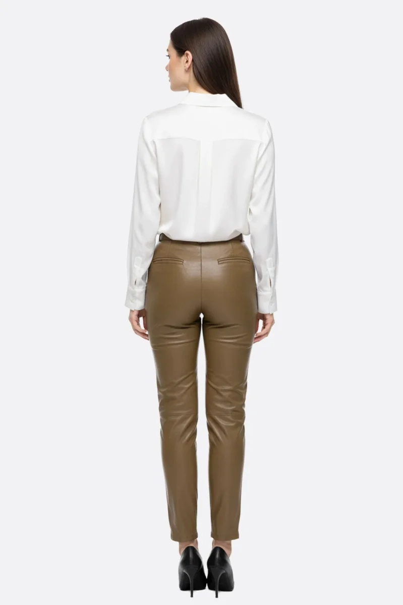 Le savoir-faire de Misciano se reflète dans chaque détail de ce pantalon. La matière en simili cuir a été choisie pour son aspect légèrement brillant et sa douceur au toucher, offrant un tombé fluide. La fermeture zippée rehaussée et le bouton à la taille assurent un ajustement précis, tandis que la ceinture à passants permet une personnalisation facile avec des accessoires. Les poches latérales discrètes ajoutent une fonctionnalité sans compromettre l’esthétique.