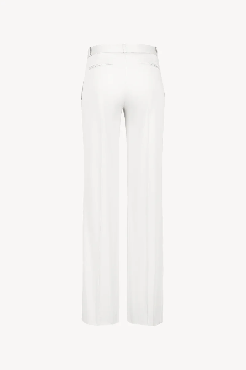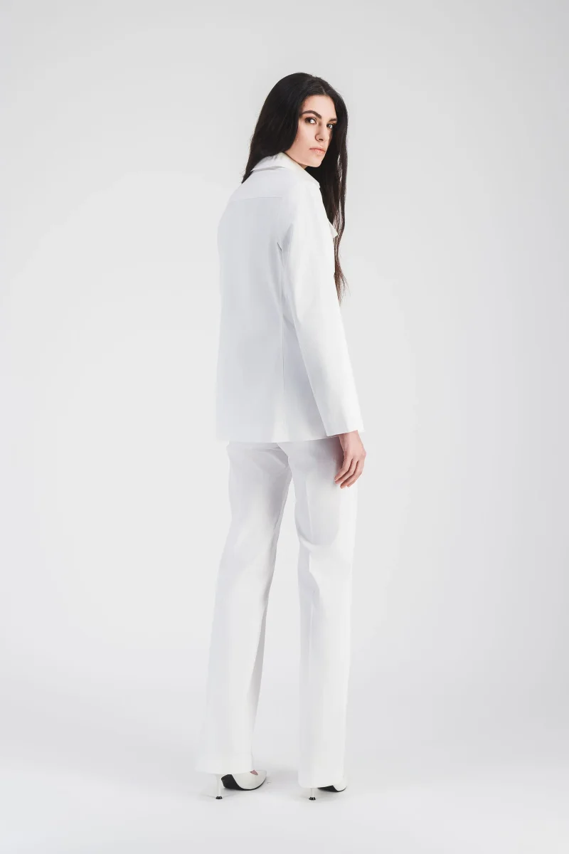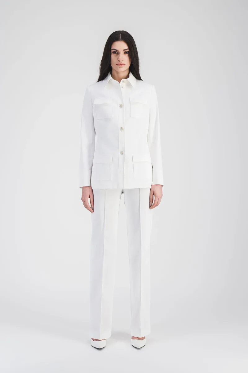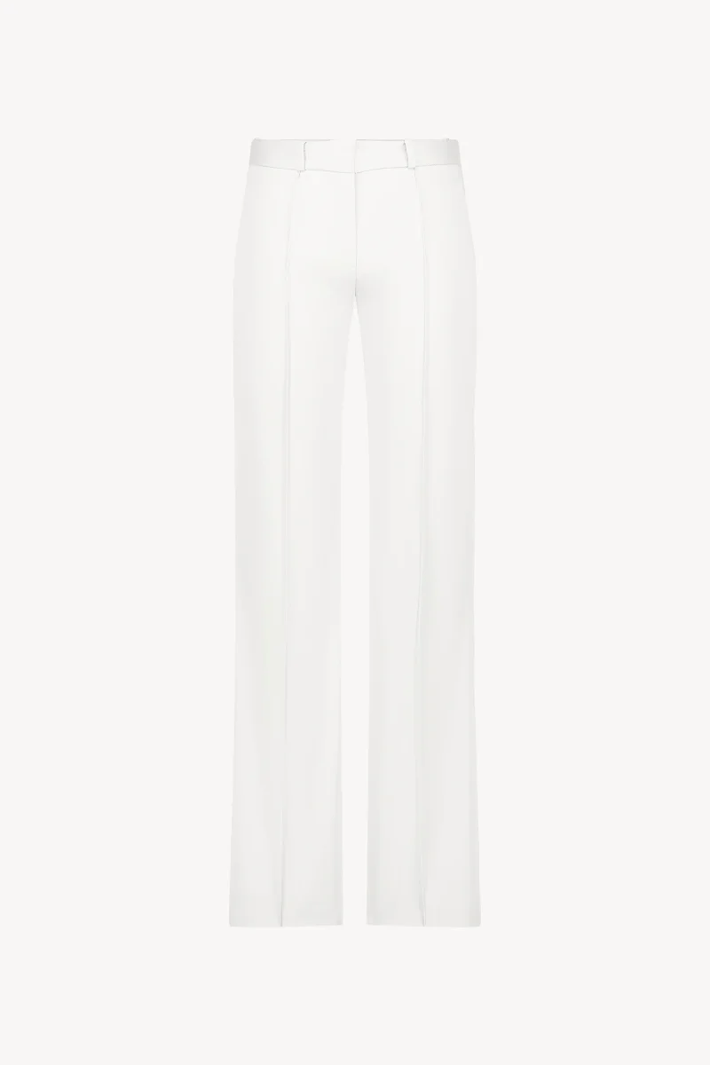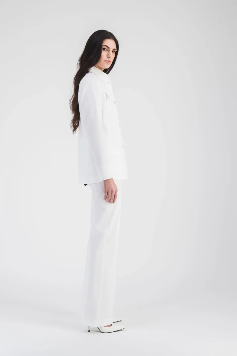 Ce pantalon évasé en satin de coton blanc optique est une pièce intemporelle qui combine élégance et confort. Sa coupe fluide allonge la silhouette tandis que ses poches italiennes discrète ajoutent une touche de praticité raffinée. Idéal pour des tenues sophistiquées ou plus décontractées, il s’adapte parfaitement à toutes les occasions.