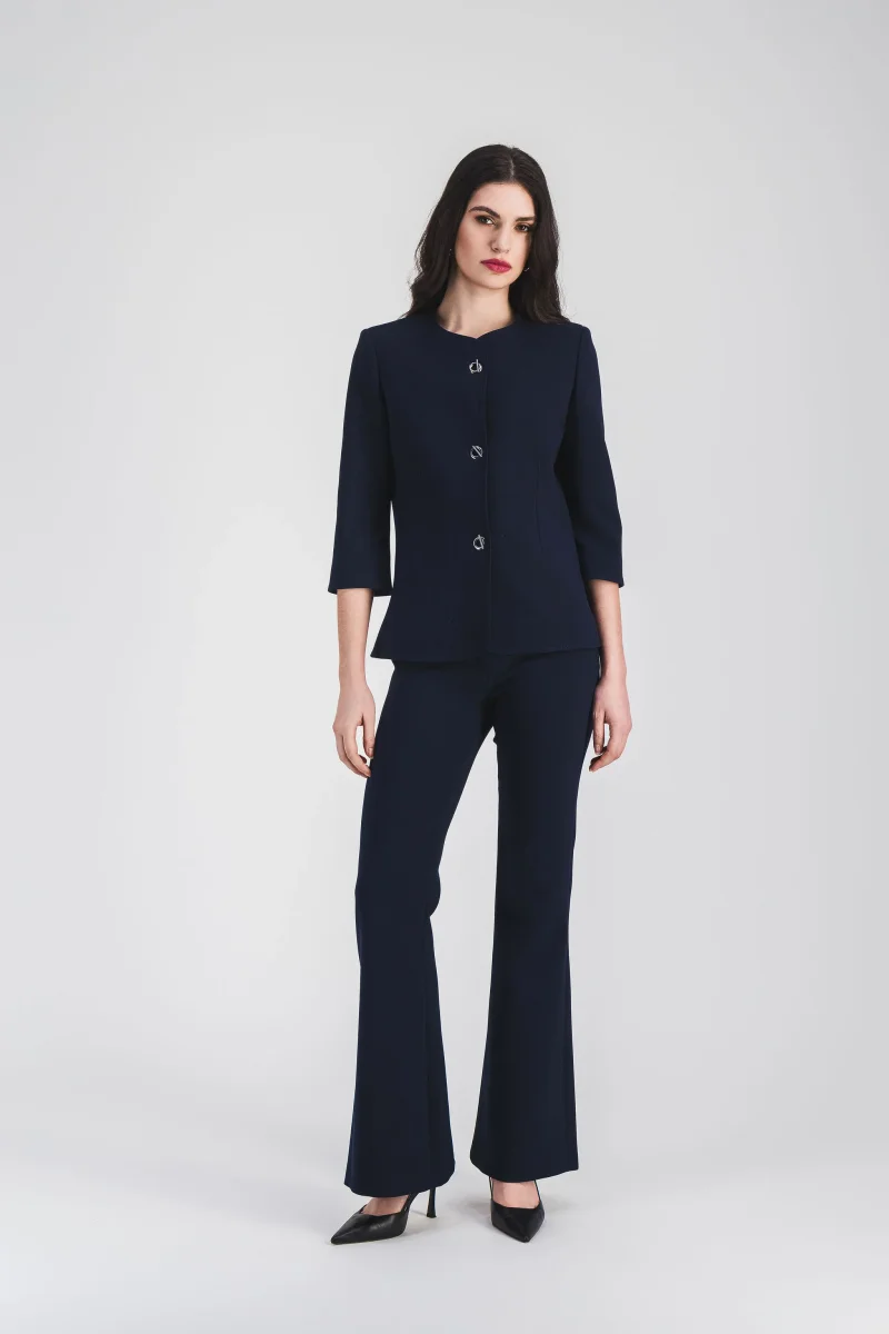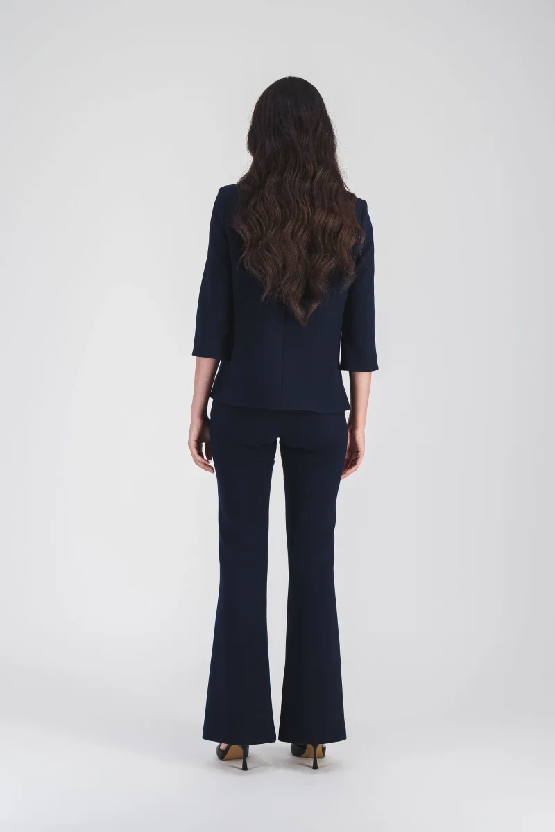 Ce pantalon évasé marine incarne une allure élégante et intemporelle. Conçu avec des plis délicats et une coupe fluide, il offre un tombé parfait pour allonger la silhouette. Une pièce essentielle pour une garde-robe élégante.