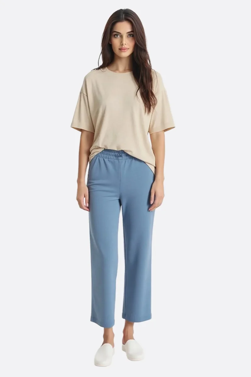 Conçu avec une attention particulière aux finitions, ce pantalon est doté de coutures discrètes et d’ourlets nets, offrant une allure soignée. La maille fluide et soyeuse offre une sensation agréable au toucher, tandis que le tissu respirant vous assure un confort en toute saison. Chaque détail, de la coupe droite légèrement évasée à la taille élastique avec bouton discret, a été pensé pour optimiser votre confort et votre style.