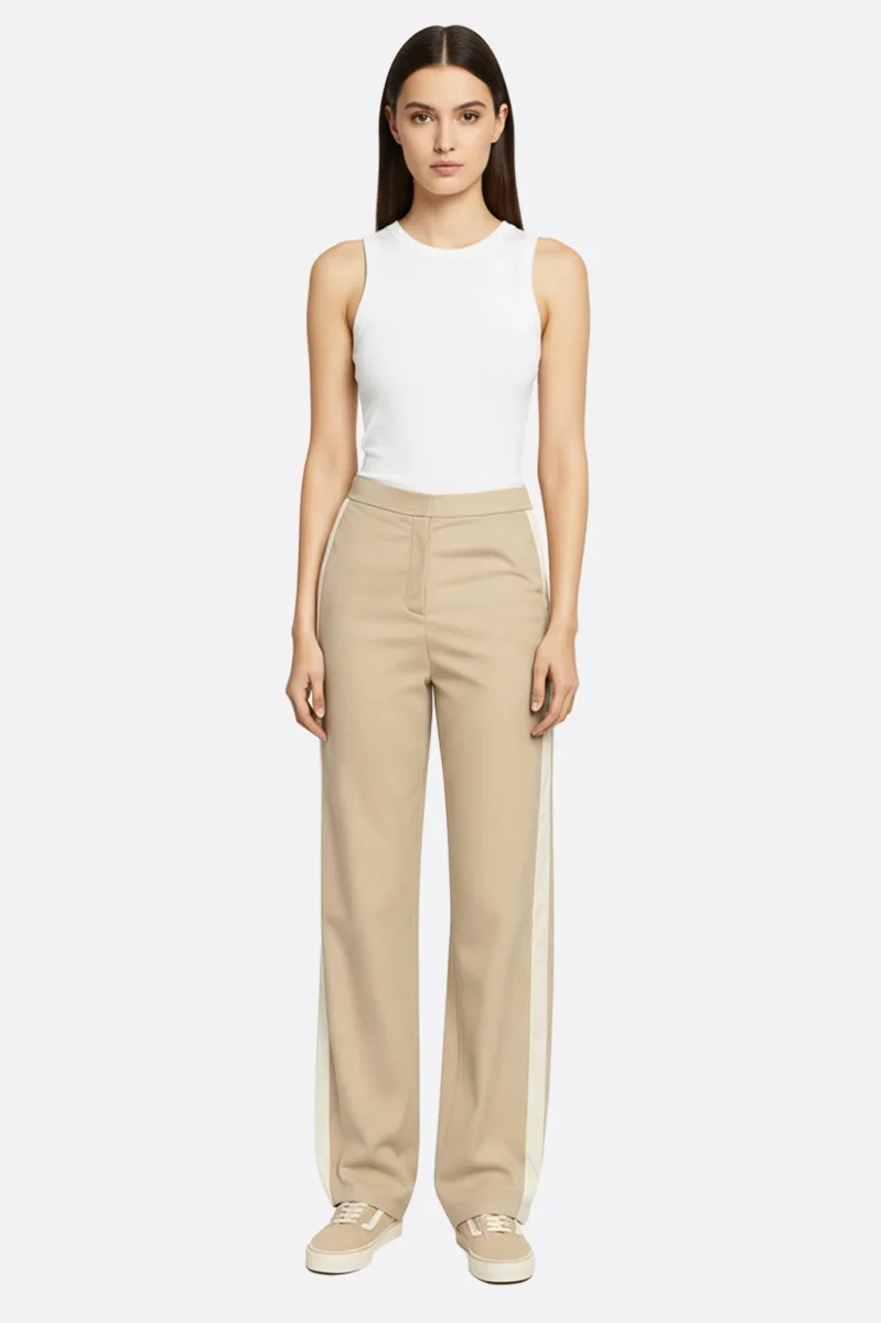Le pantalon large décontracté beige à bandes contrastantes blanches de la maison Misciano s’intègre particulièrement dans un vestiaire moderne. Il résout les problèmes de confort et de polyvalence grâce à sa matière soigneusement sélectionnée pour sa douceur et sa respirabilité. Sa coupe large et son tombé fluide offrent une allure élancée idéale pour toutes les occasions.