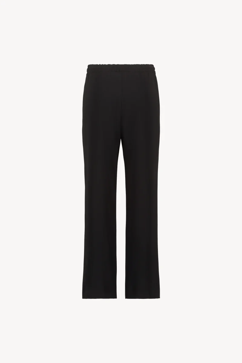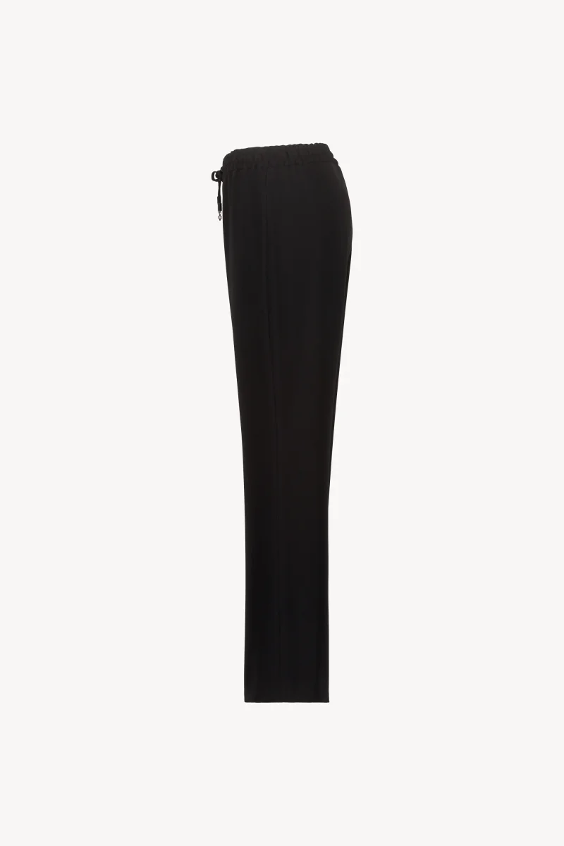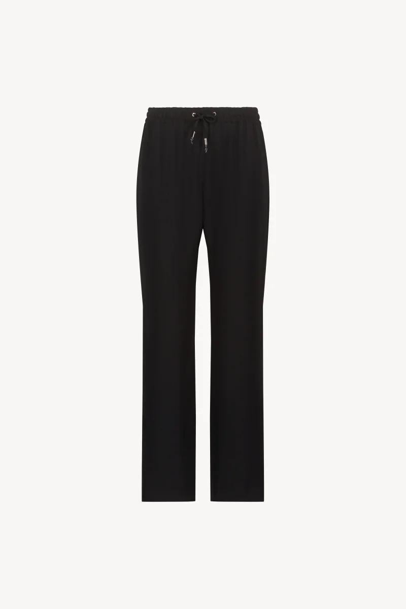 Un essentiel raffiné, ce pantalon fluide noir incarne le chic moderne avec son élégante silhouette droite. Sa taille élastique ornée d’un cordon en gros grain ajoute une touche de sophistication, tandis que le tissu doux offre un confort sans compromis.