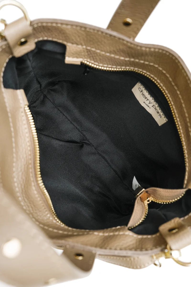 sac AIMEE Description Sac à main en cuir de vachette grainée. Bandes cloutées. Grande bandoulière réglable et amovible. Fermeture éclaire principale. Poche intérieure zippée. Dimension: 24,5x21x7,5cm Détails précieux Avec des clous bien placés, ce sac élégant est un choix idéal pour les occasions spéciales ou pour une tenue décontractée. Entretien Ne pas laisser son sac […]