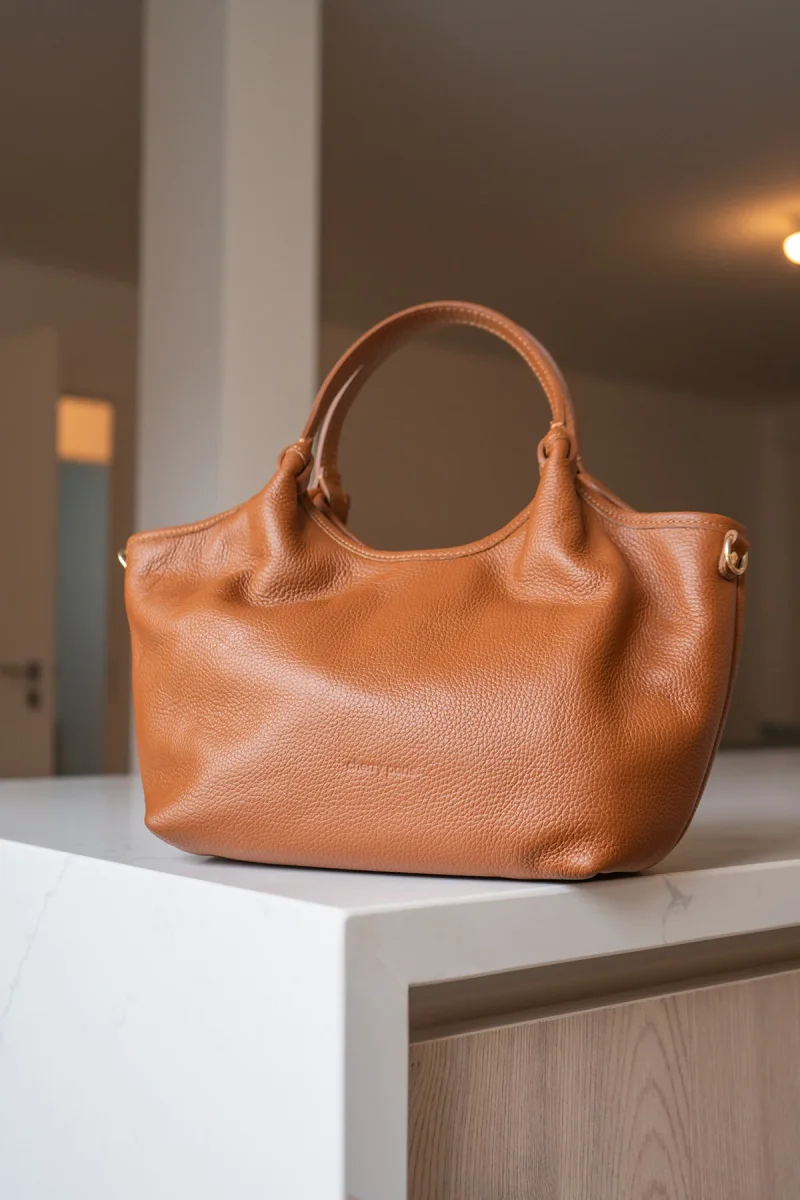- Sac à main en cuir de vachette grainée.