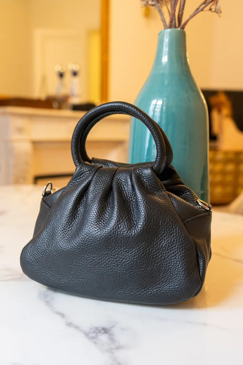 sac AYLA Description Sac à main en cuir de vachette grainée. Fermeture éclaire principale avec aimant. Bandoulière réglable et amovible. Poche zippée intérieure. Dimension: 20x18x12cm Détails précieux Sa plissure ajoute une touche de sophistication. Entretien Ne pas laisser son sac à main dans des environnements trop humides ou trop chauds.Appliquer un imperméabilisant avant toute utilisation.Eviter […]