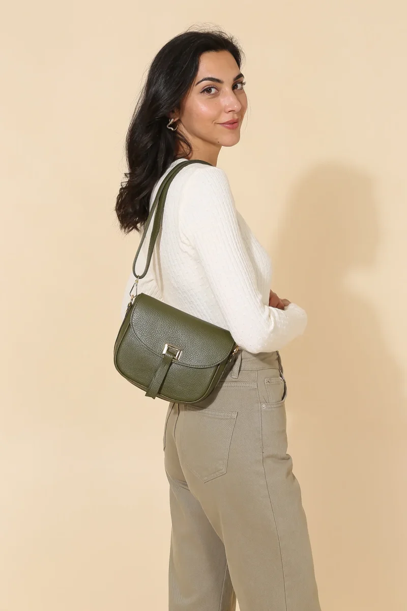 - Sac bandoulière cuir de vachette grainé.
