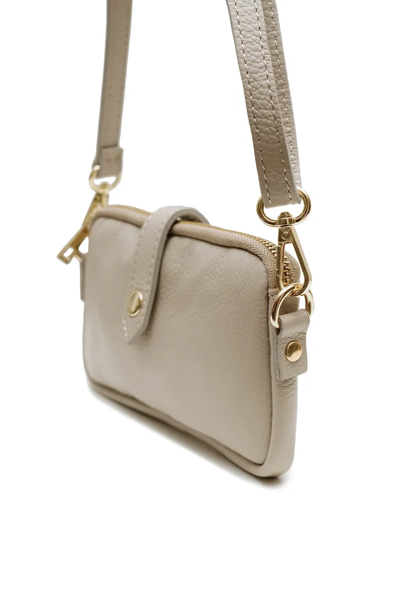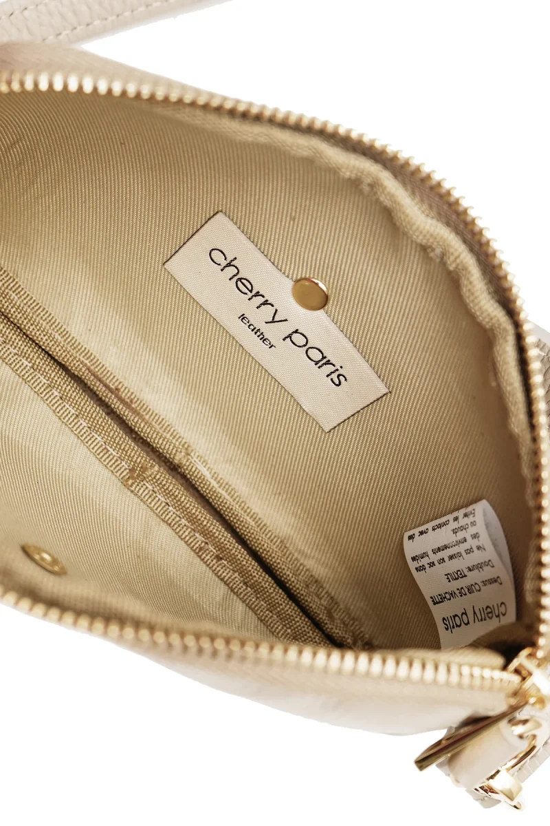 • Sac pochette extra plate en cuir de vachette grainée.