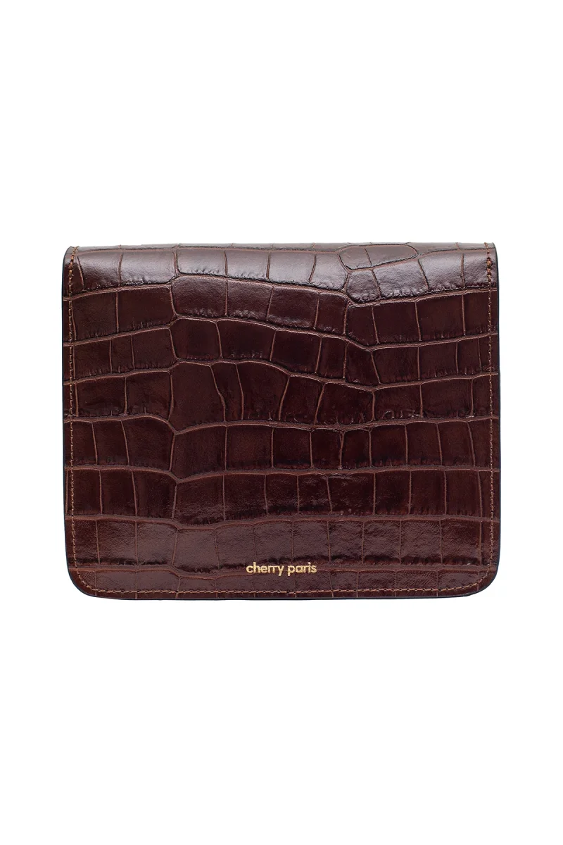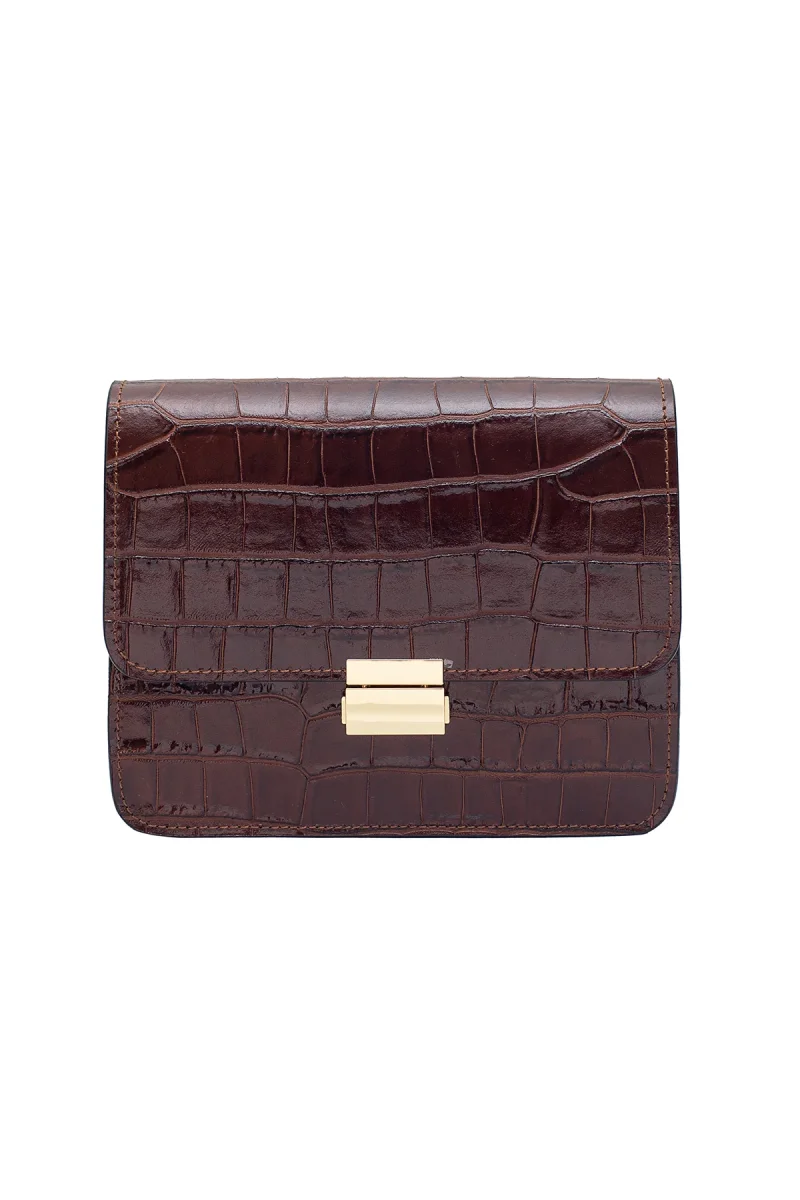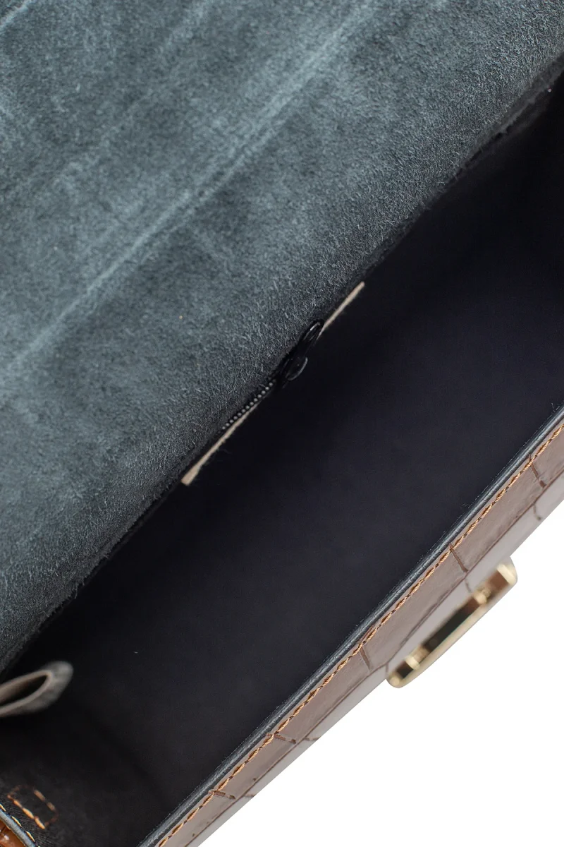 - Sac besace en croûte de cuir de vachette imprimé croco.