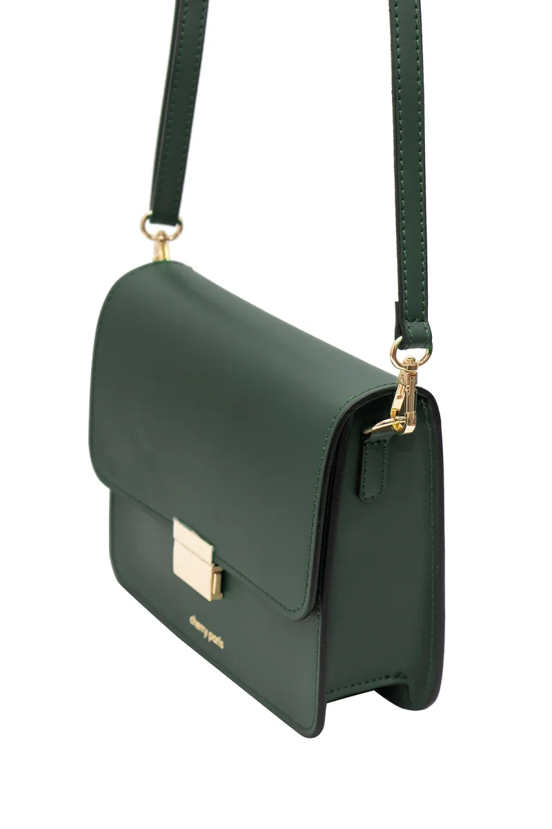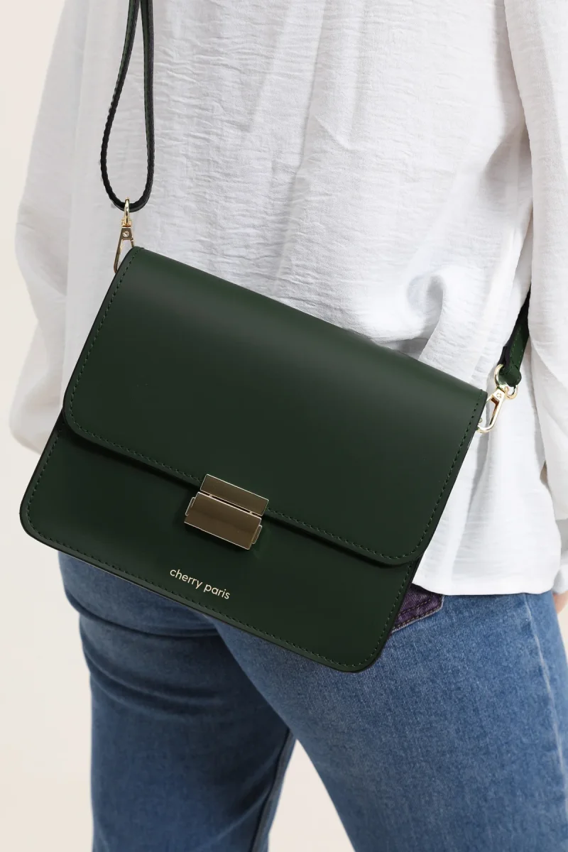- Sac besace en croûte de cuir de vachette lisse.