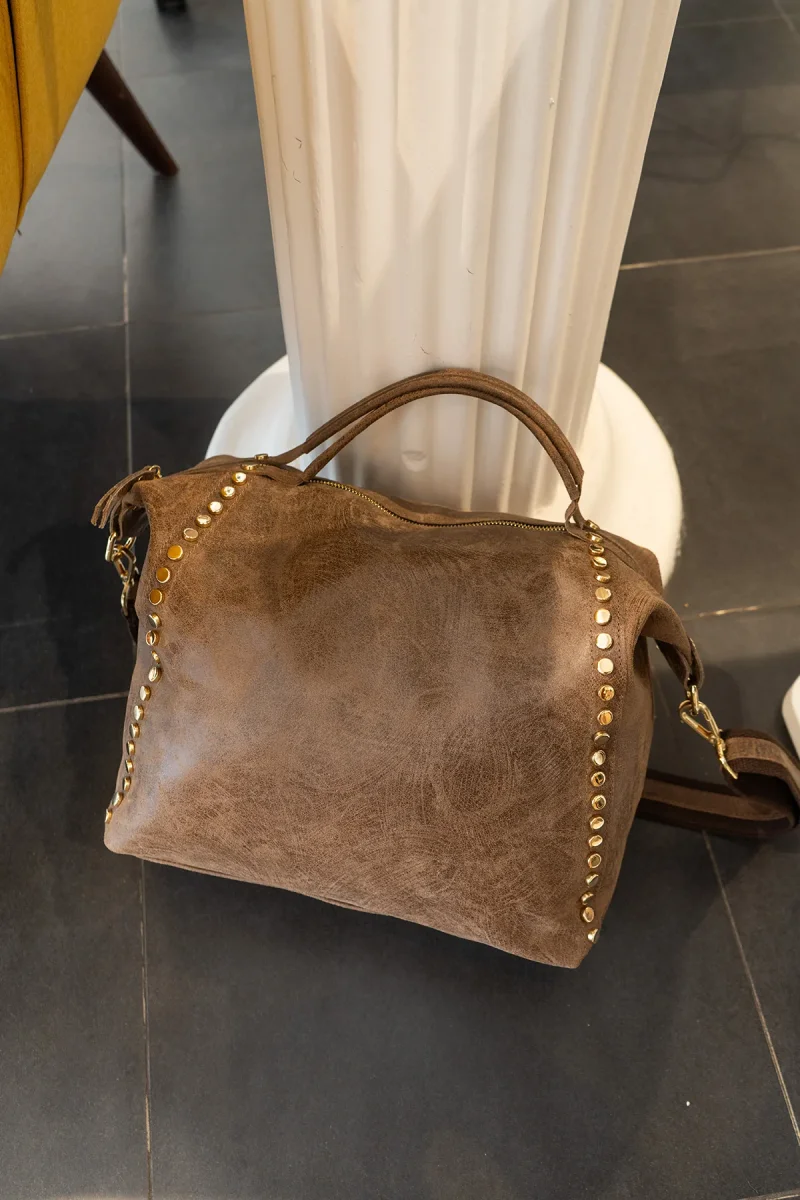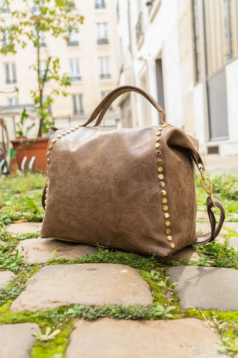 - Deux bandes cloutés à l’avant du sac.