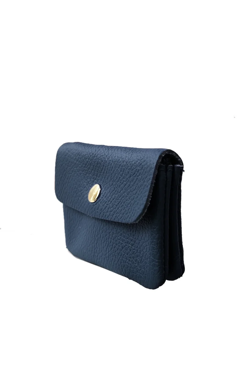 - Porte-monnaie avec rabat pression en cuir de vachette grainé.