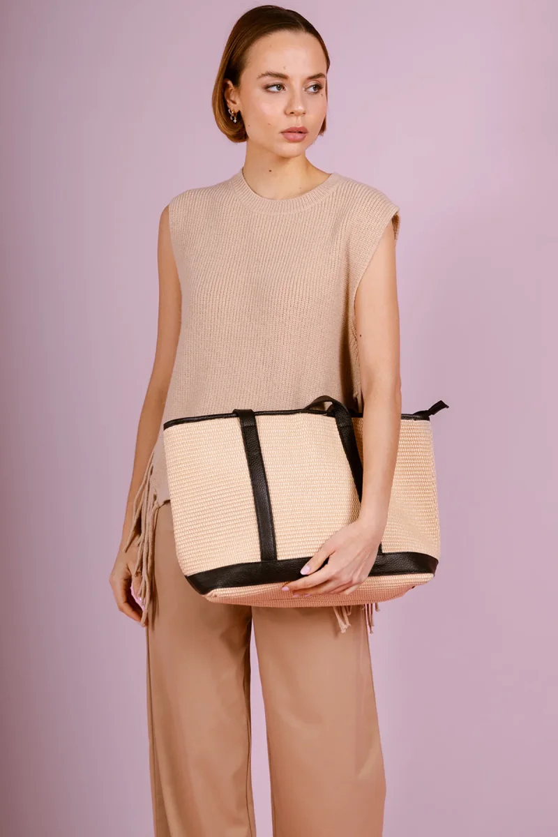 Ce sac raphia est parfait pour les journées ensoleillées.