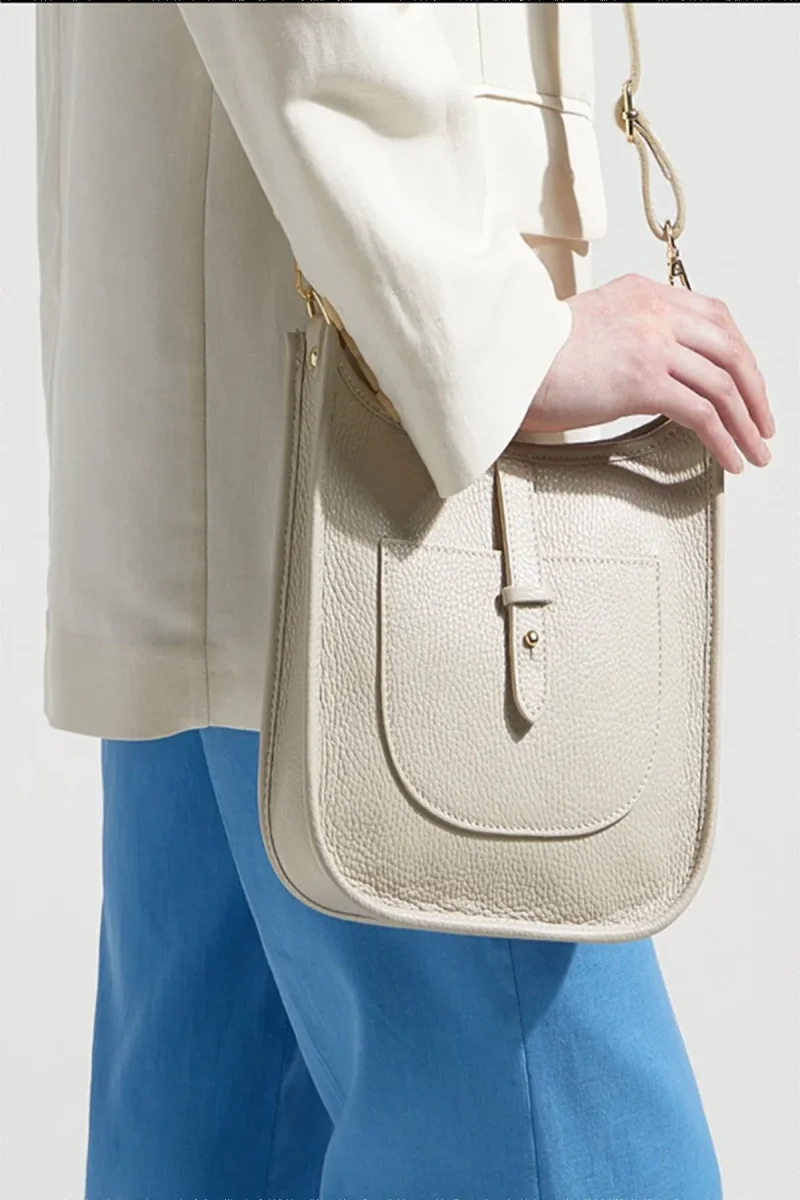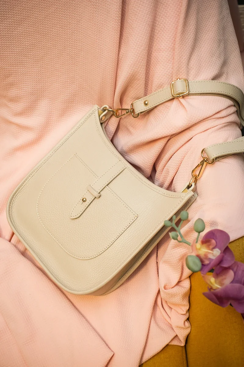 Sac Sienna • porté travers en cuir grainé • fermeture éclair principale • bandoulière réglable et amovible • poche avant • fermeture éclaire intérieure • dimension : 22x22x7 cm Détail précieux ✨ La patte avant lui donne un côté esthétique et sécurisé MatièreLe sac est composé de cuir de vachette, la doublure 100% textile Entretien […]