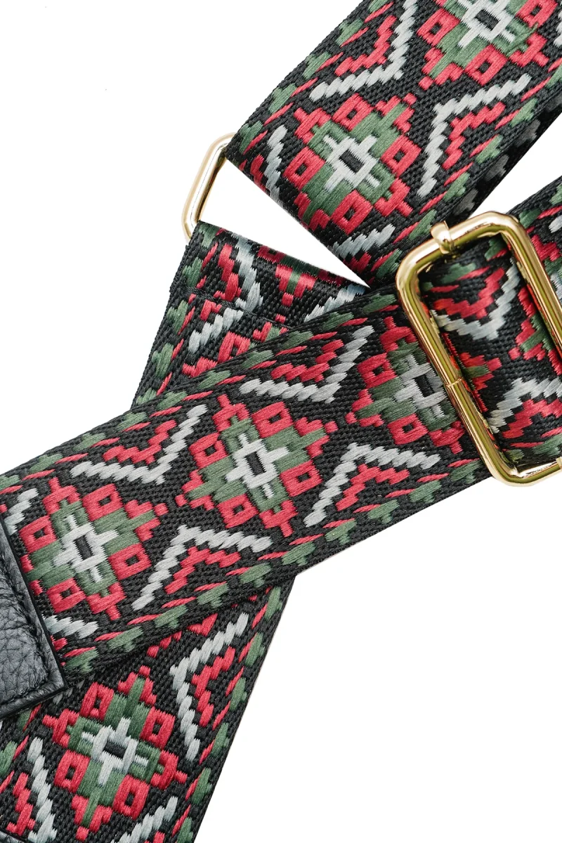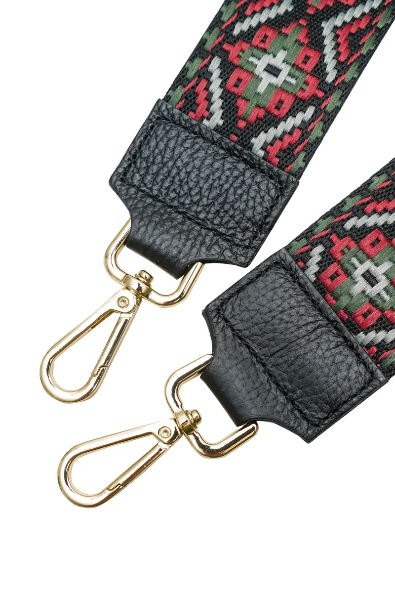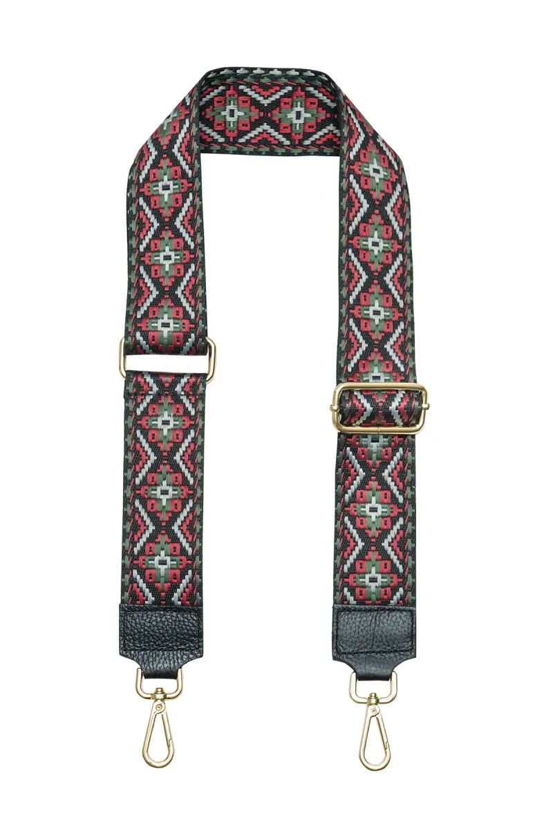 Sangle Clothilde • sangle bandoulière en textile garnie en cuir de vachette grainé • largeur : 5 cm – longueur mini : 70 cm – max : 120 cm Détail précieux ✨ Son tissu coloré idéal pour agrémenter un sac MatièreLa sangle est composée de textile et de cuir