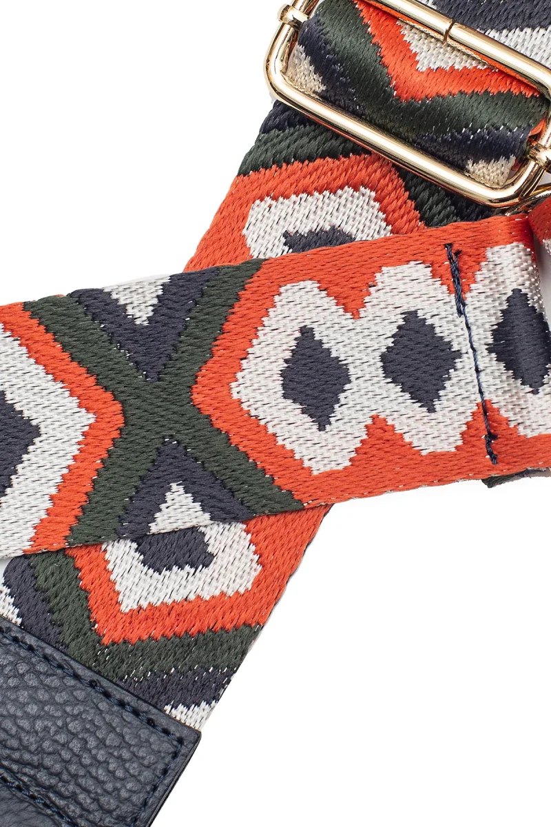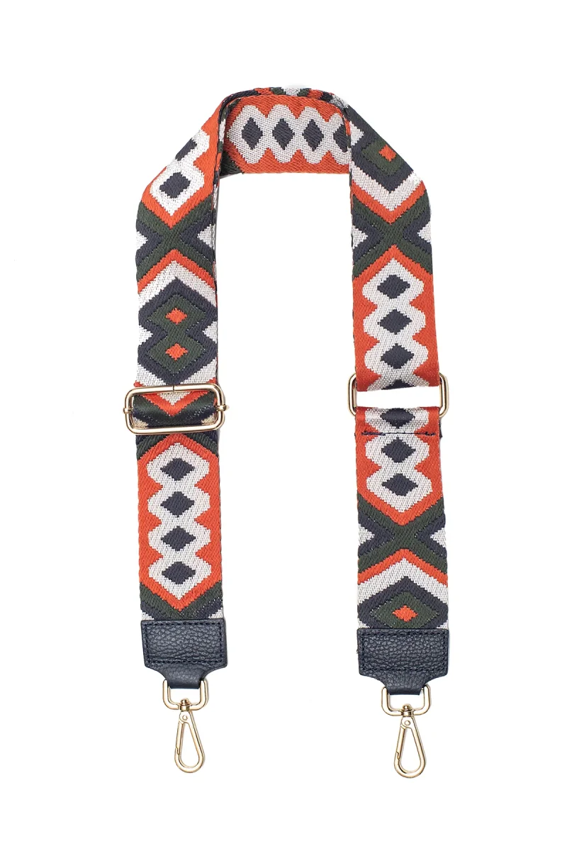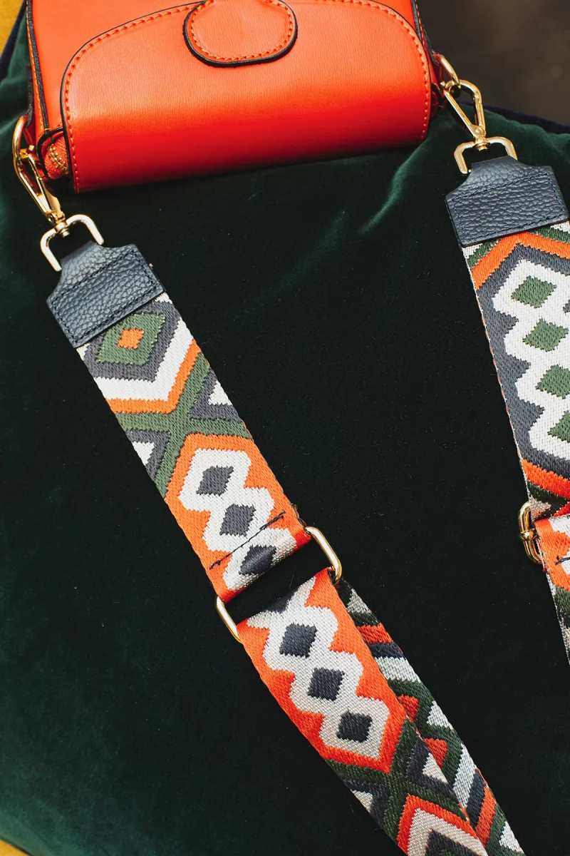 Sangle Yona • sangle bandoulière en toile coton garnie en cuir de vachette grainé • largeur : 5 cm – longueur mini : 70 cm – max : 120 cm Détail précieux ✨ Son tissu coloré idéal pour agrémenter un sac MatièreLa sangle est composée de textile et de cuir
