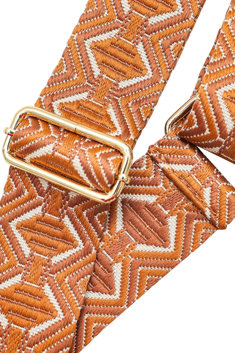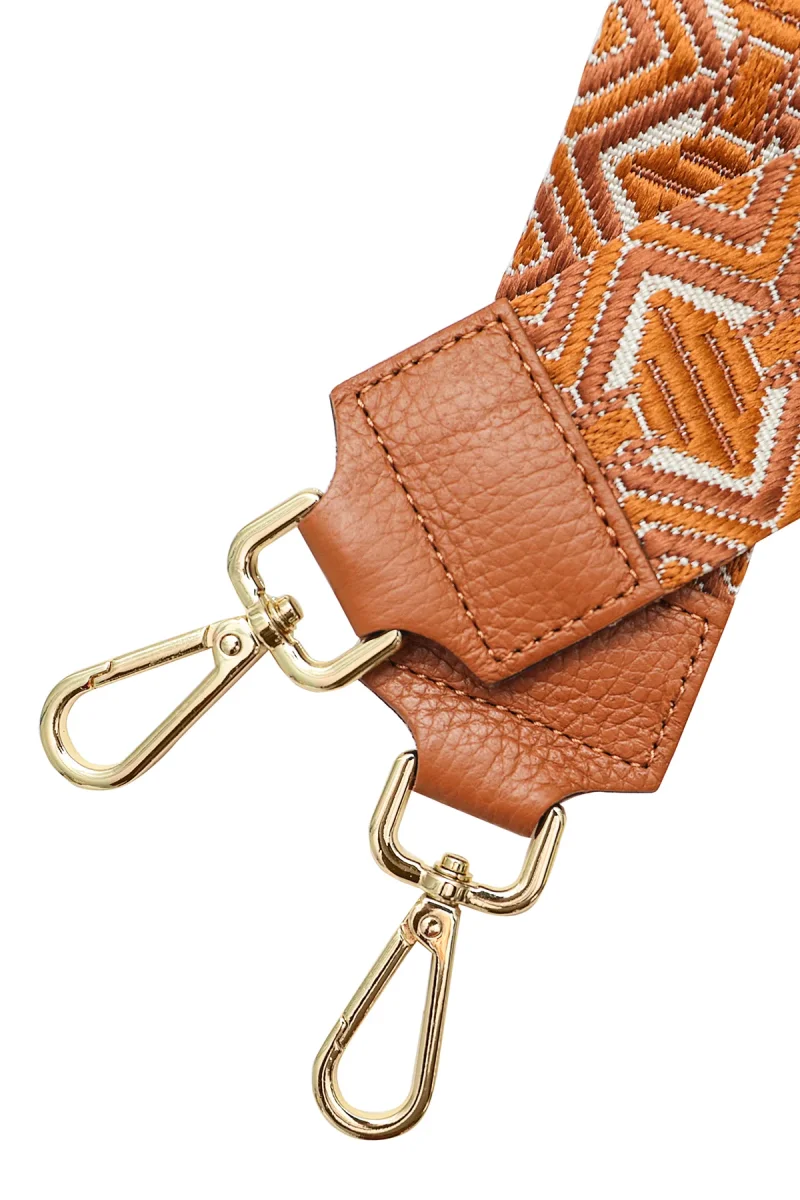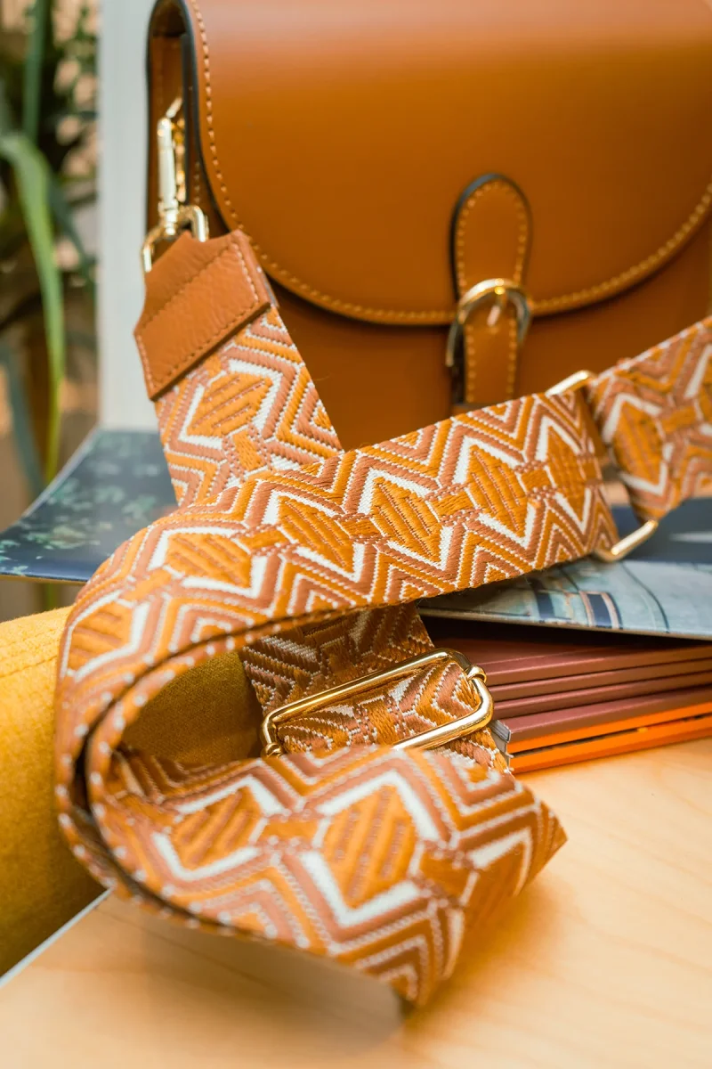 Sangle LEVANA • sangle bandoulière en textile garnie en cuir de vachette grainé • largeur : 5 cm – longueur mini : 70 cm – max : 120 cm Détail précieux ✨ Son tissu coloré idéal pour agrémenter un sac MatièreLa sangle est composée de textile et de cuir de vachette