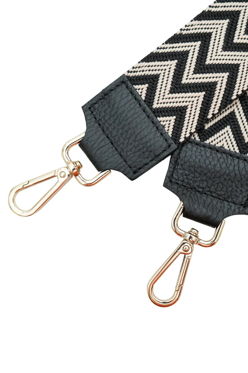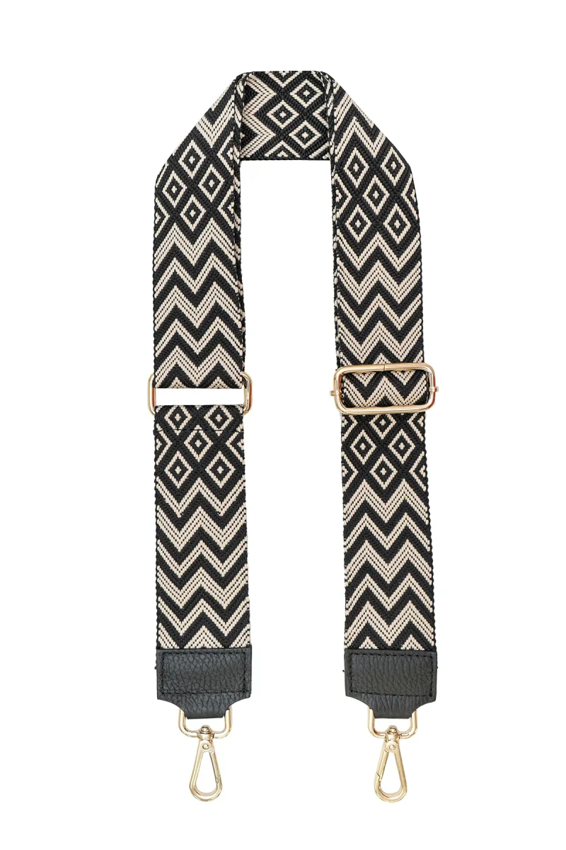 Sangle SALLY • sangle bandoulière en textile garnie en cuir de vachette grainé • largeur : 5 cm – longueur mini : 70 cm – max : 120 cm Détail précieux ✨ Son tissu coloré idéal pour agrémenter un sac MatièreLa sangle est composée de textile et de cuir
