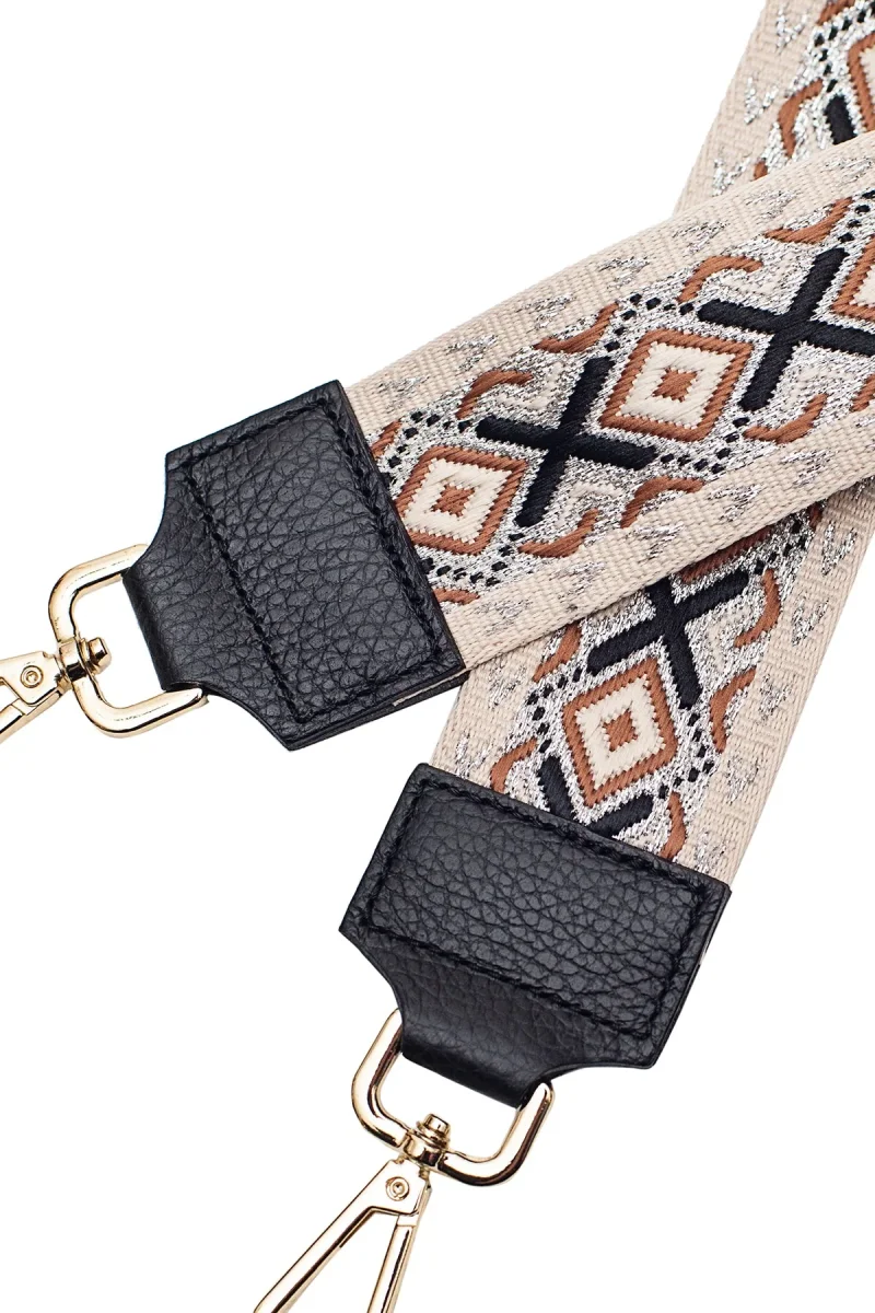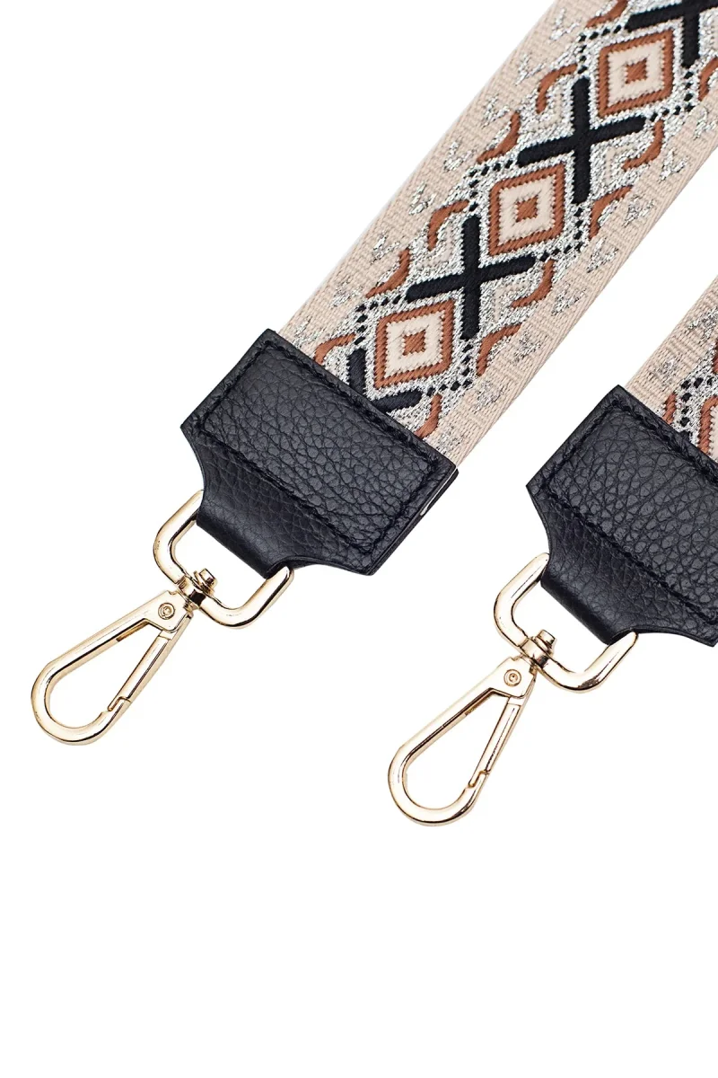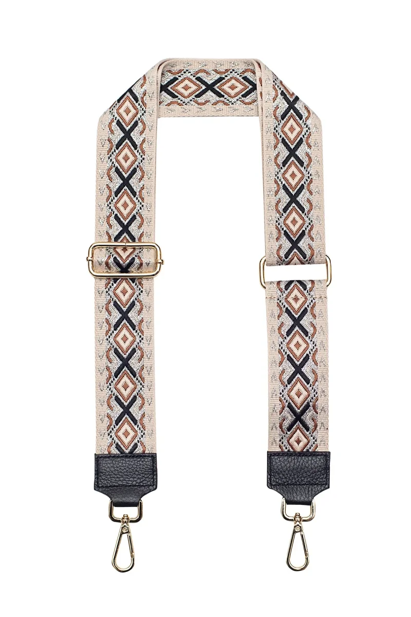 Sangle Yona • sangle bandoulière en textile garnie en cuir de vachette grainé • largeur : 5 cm – longueur mini : 70 cm – max : 120 cm Détail précieux ✨ Son tissu coloré idéal pour agrémenter un sac MatièreLa sangle est composée de textile et de cuir