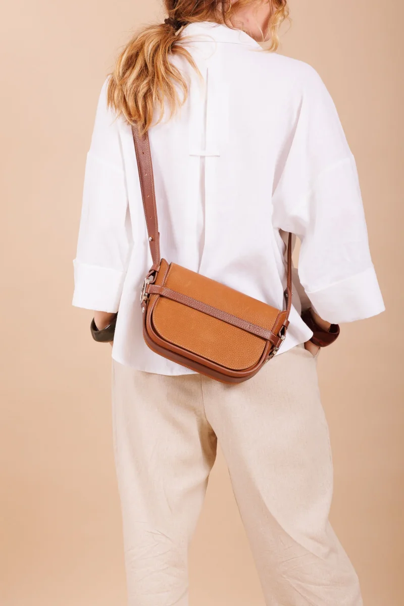 Le sac à bandoulière Sara gold incarne toute la philosophie d’ERRO, sellier maroquinier installé au cœur du Pays basque. Pensé pour accompagner la femme dans son quotidien avec élégance et discrétion, ce sac en cuir est le reflet d’un savoir-faire transmis dans notre atelier de maroquinerie, ancré dans une démarche responsable, durable et locale.