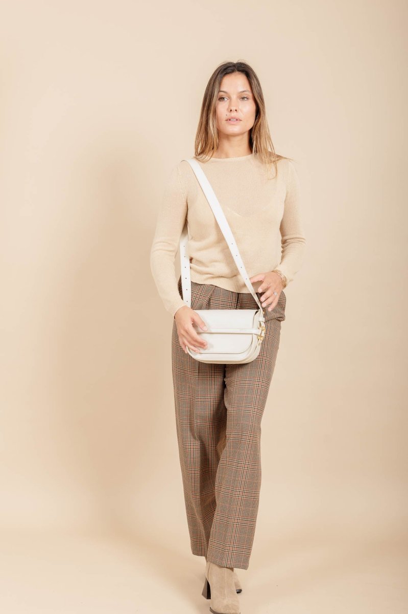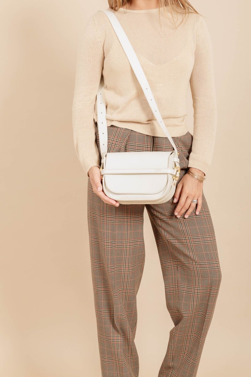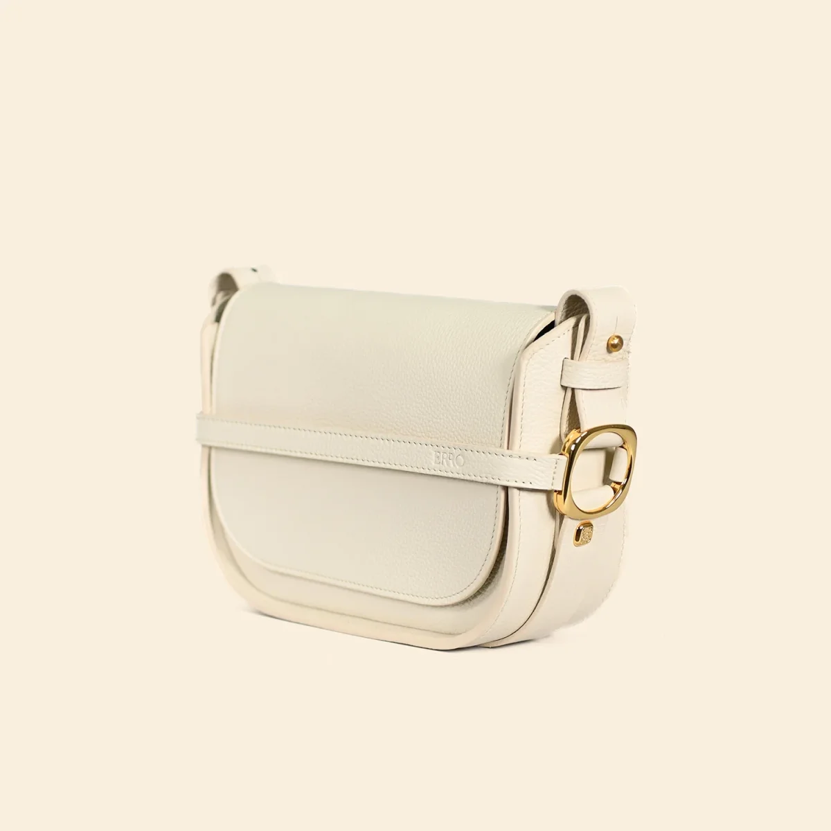 Le sac SARA se dévoile cette saison dans une teinte lumineuse et délicate : Jasmin, un blanc cassé élégant aux reflets ivoire. Rehaussé d’une bouclerie dorée brillante, ce modèle incarne une vision du luxe sobre et raffiné, pensée pour illuminer toutes les silhouettes.