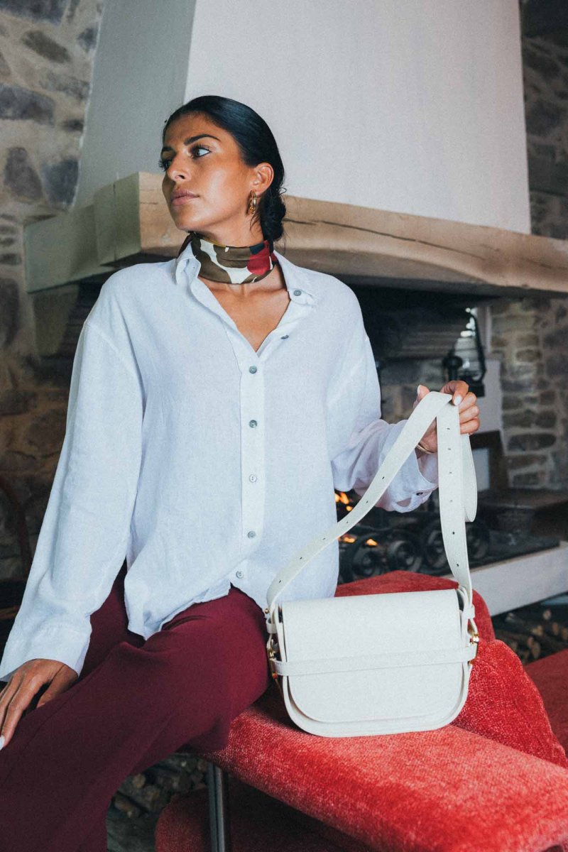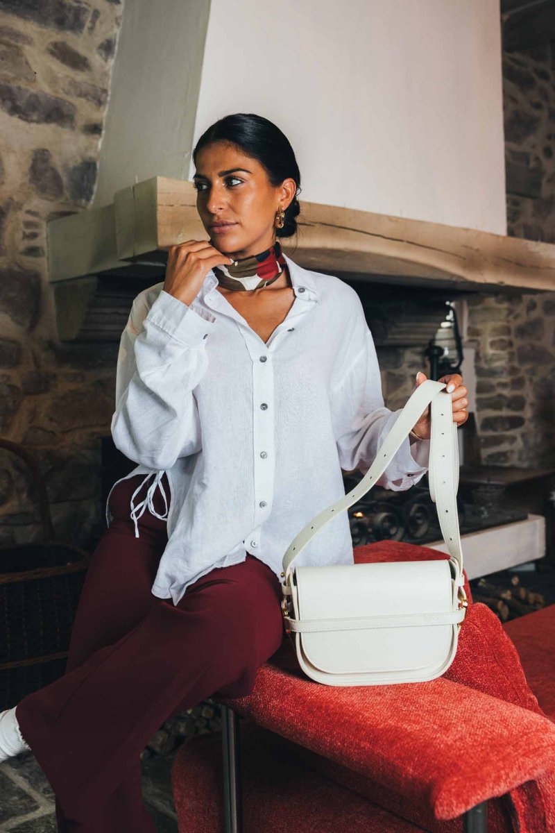 Minimaliste et structuré, SARA Jasmin est un sac bandoulière en cuir pleine fleur, tanné selon des procédés respectueux de l’environnement. À la fois chic, fonctionnel et durable, il se porte aisément au quotidien et s’adapte à tous les styles avec une élégance intemporelle.