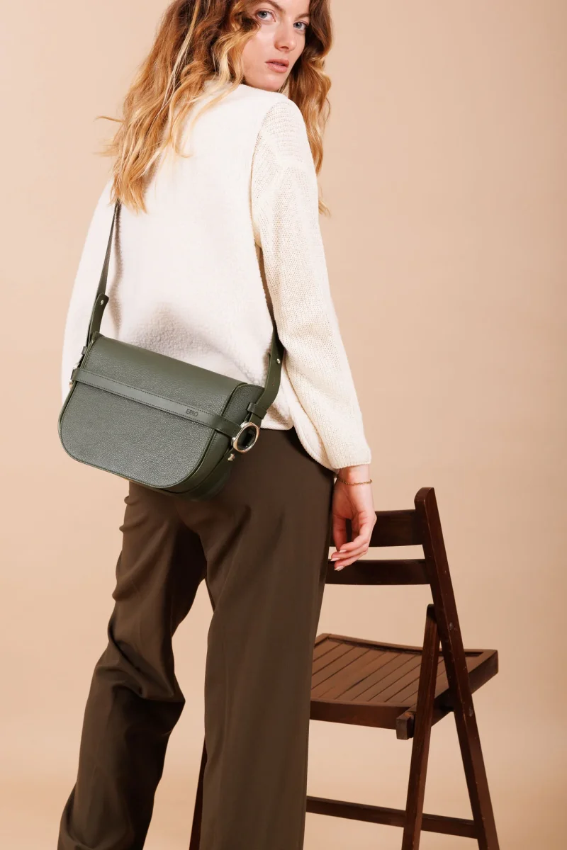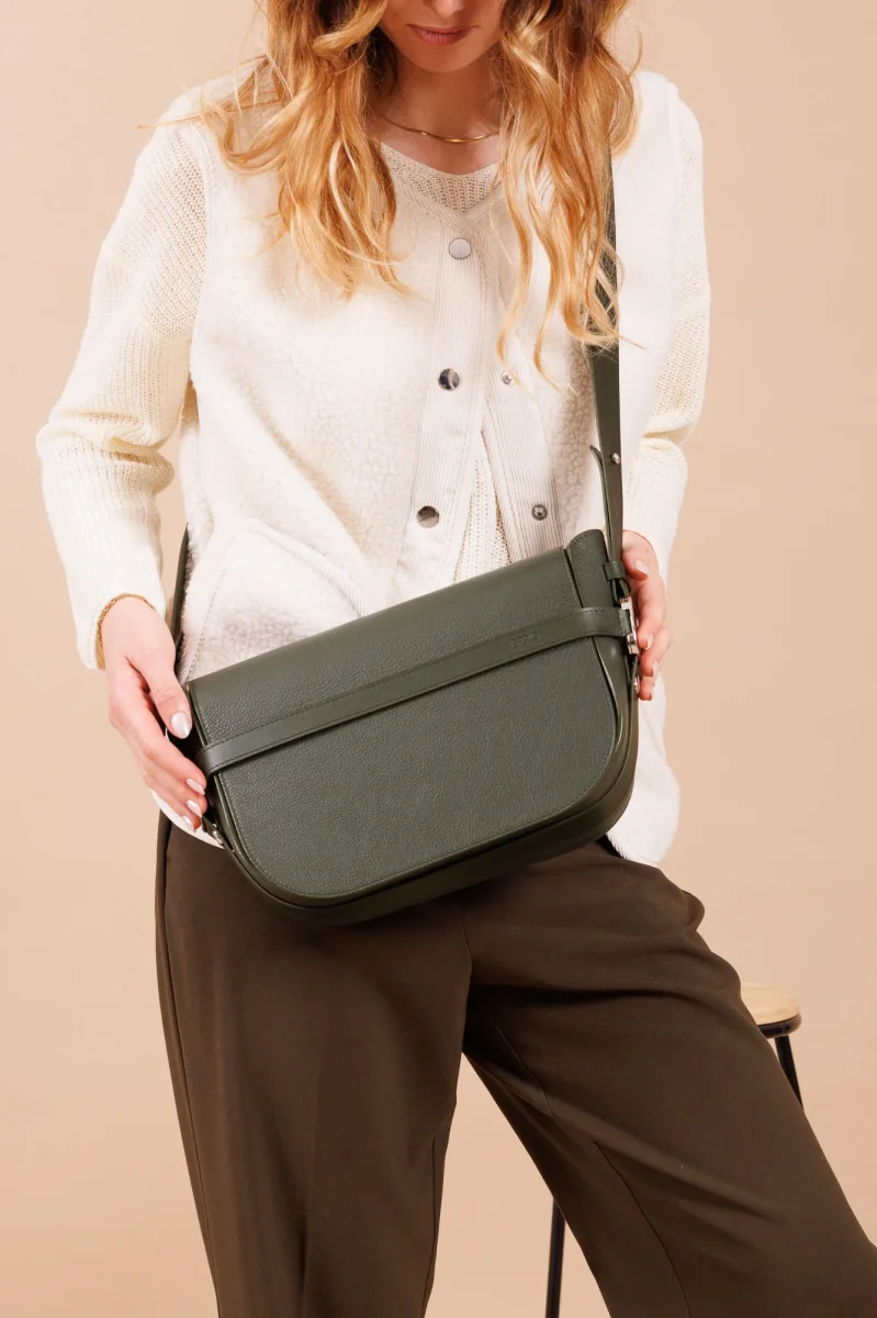 Vibrant et singulier, le vert profond du SARA L Cèdre évoque la nature brute et le caractère affirmé de la femme qui le porte. Ce sac à bandoulière spacieux marie parfaitement la fonctionnalité au raffinement, dans une ligne douce et structurée, pensée pour le quotidien.