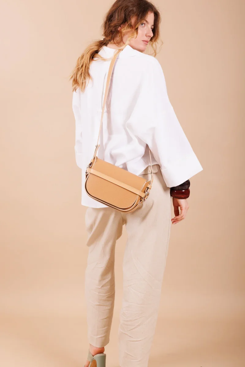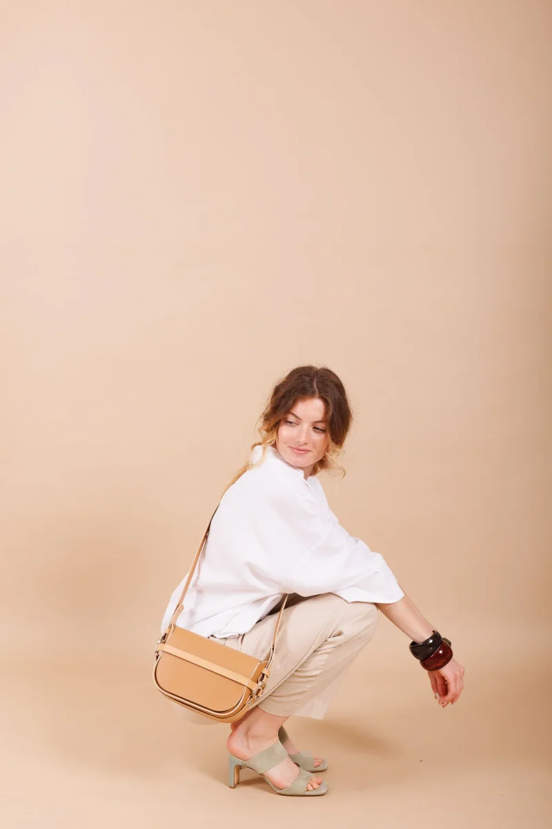 Doux, intemporel et lumineux, le sac SARA couleur Sable est un incontournable de la maroquinerie française signée ERRO. Fabriqué à la main dans notre atelier de maroquinerie situé au Pays Basque, ce sac femme en cuir conjugue simplicité, élégance et durabilité.