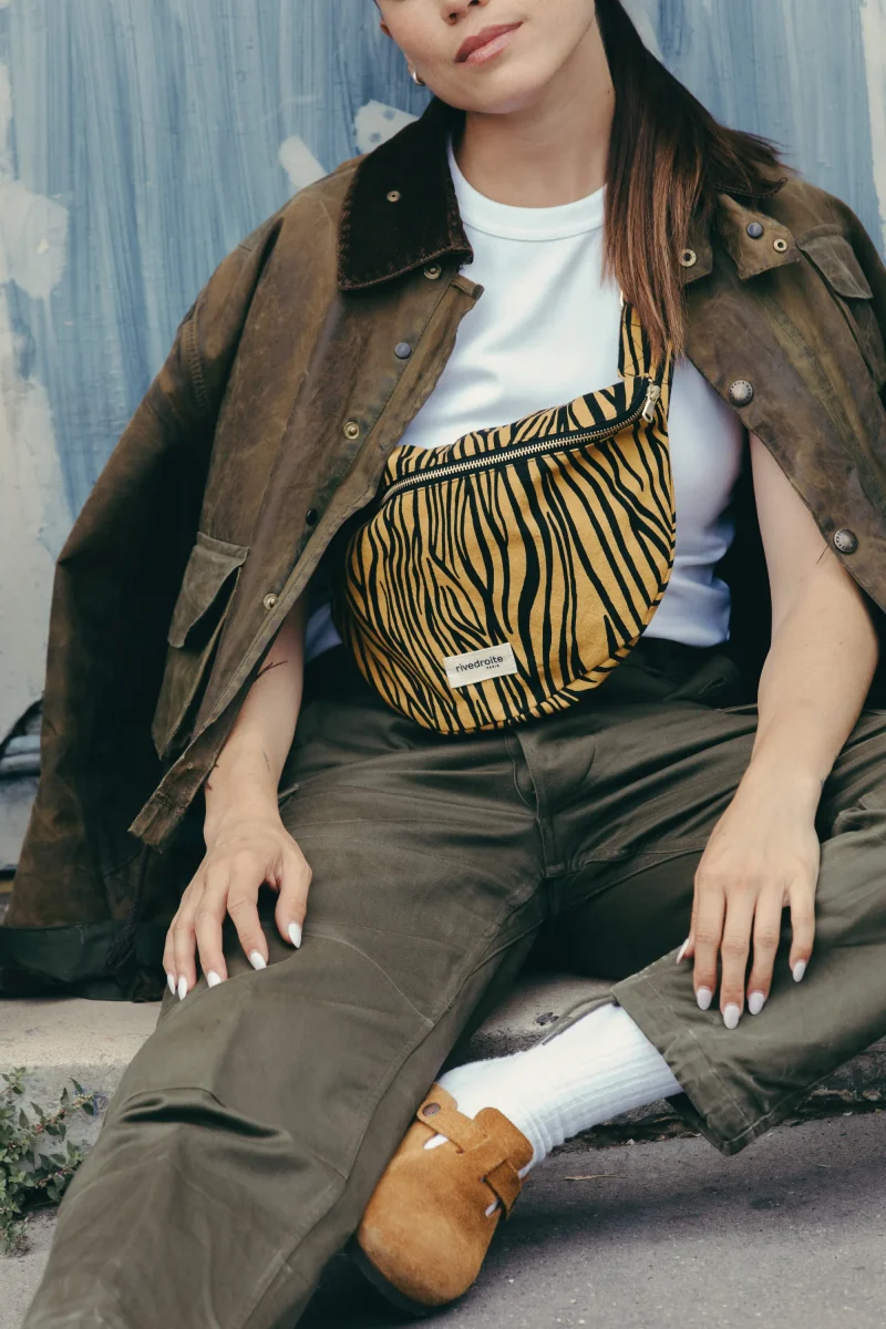 Custine XL version Zèbre va devenir votre indispensable. Vous allez adorer sa forme arrondie et sa grande poche intérieure zippée qui vous permettra de séparer vos affaires à l’intérieur. Avec Custine XL, plus besoin de sac pour emporter portefeuille, chargeur, téléphone, lunettes, médicaments, masques etc. Sa taille s’ajuste hyper facilement grâce à sa anse réglable.