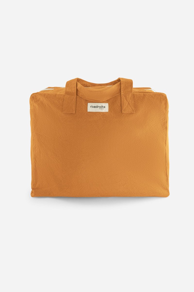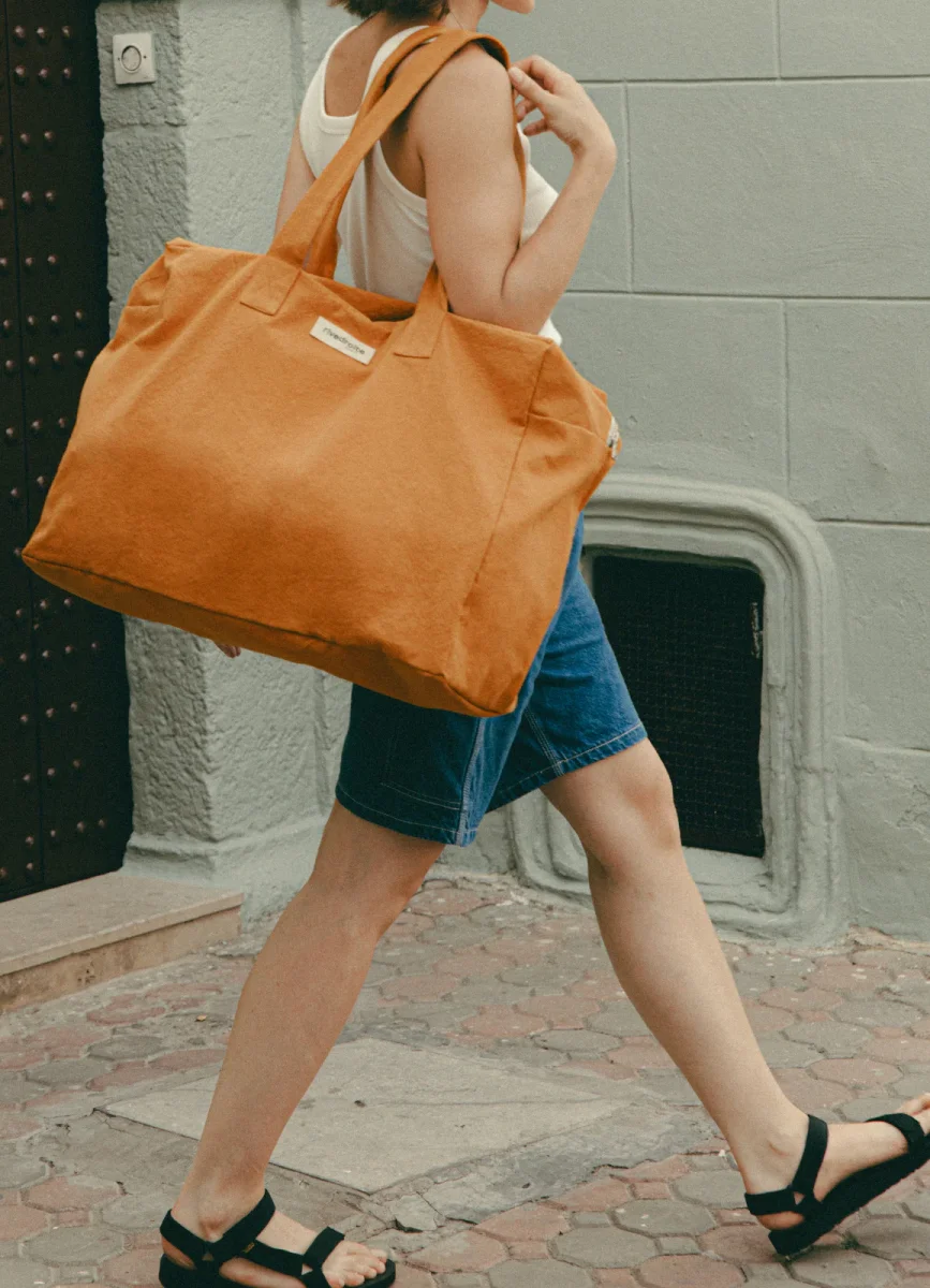 Jeans, Tee-shirts, robes légères, baskets et sandales, vous pourrez y glisser vos essentiels de voyage tout en gardant à proximité vos clés et téléphone dans sa poche intérieure zippée. Elzévir c’est aussi un sac week-end qui se plie et se rangera facilement en attendant la prochain départ.