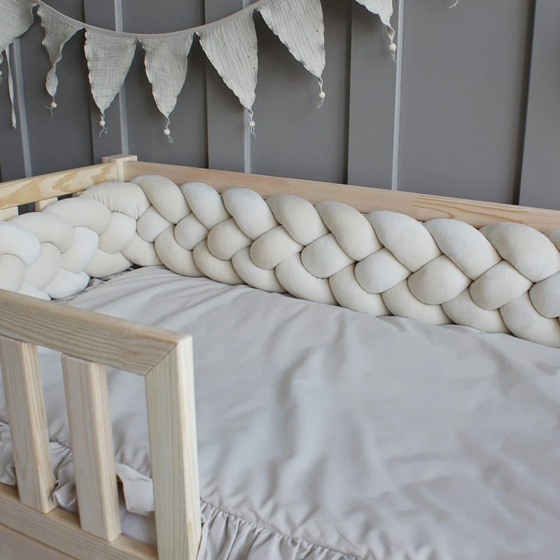 La tresse de lit 4 brins et sa matière en velours tout doux invite les petites mains curieuses à explorer et à toucher. Mais la tresse de lit 4 brins sécurise avant tout le lit de votre enfant et évite qu’il ne se cogne durant son sommeil.