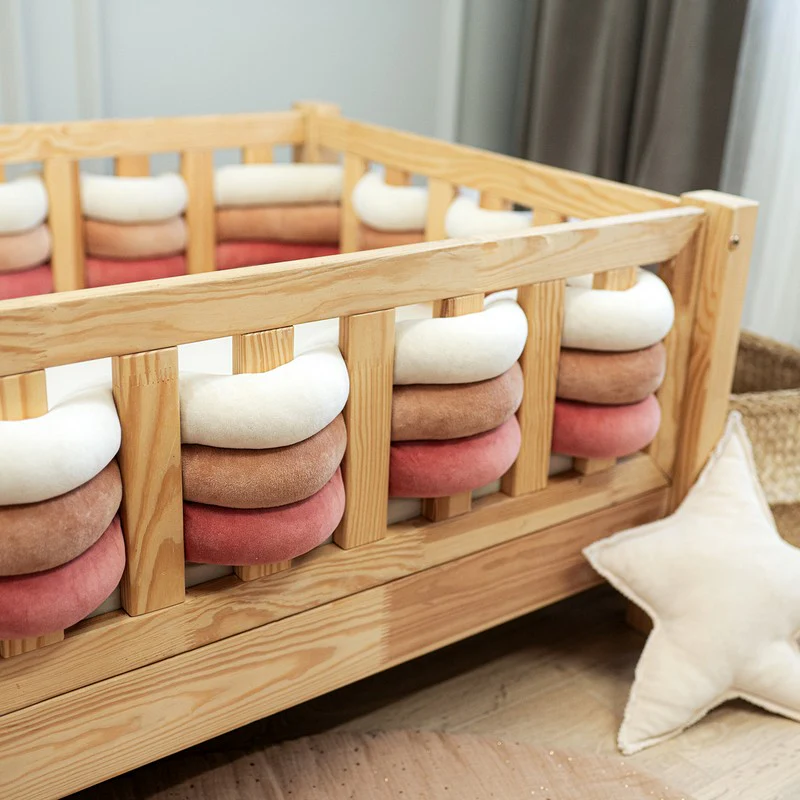 Sa matière en velours tout doux invite les petites mains curieuses à explorer, à toucher et à stimuler leur sens tactile tout en évitant qu’il se cogne contre les rebords du lit!