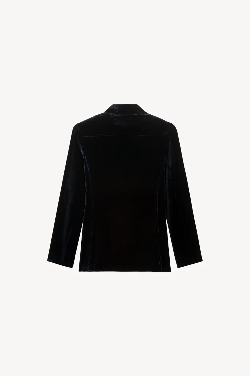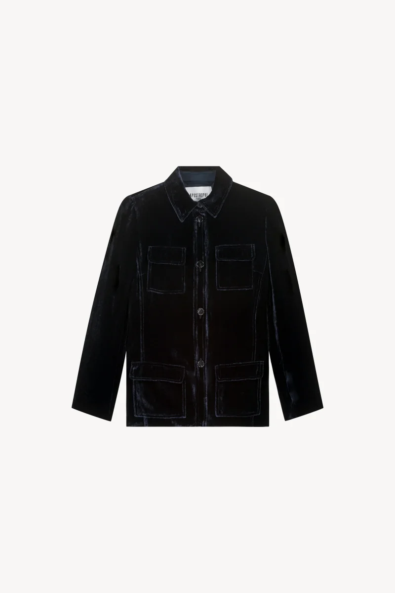 Le tailleur en velours classique reste un incontournable pour toute garde-robe de soirée. Notre modèle de de veste chemise, confectionné dans un somptueux mélange de soie de mûrier, il possède une fermeture à boutonnage simple et des poches à rabat fonctionnelles, offrant une structure à la veste. Note de style : portez-le avec le pantalon assorti.