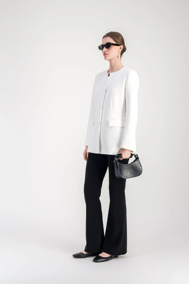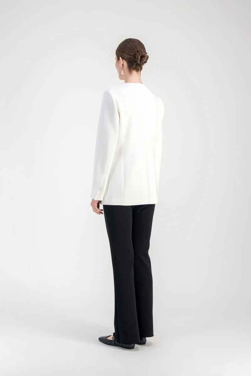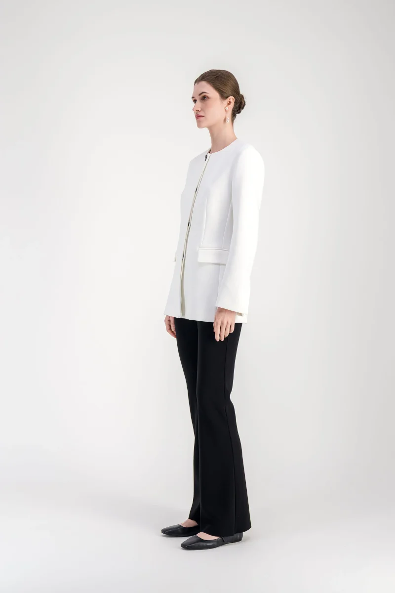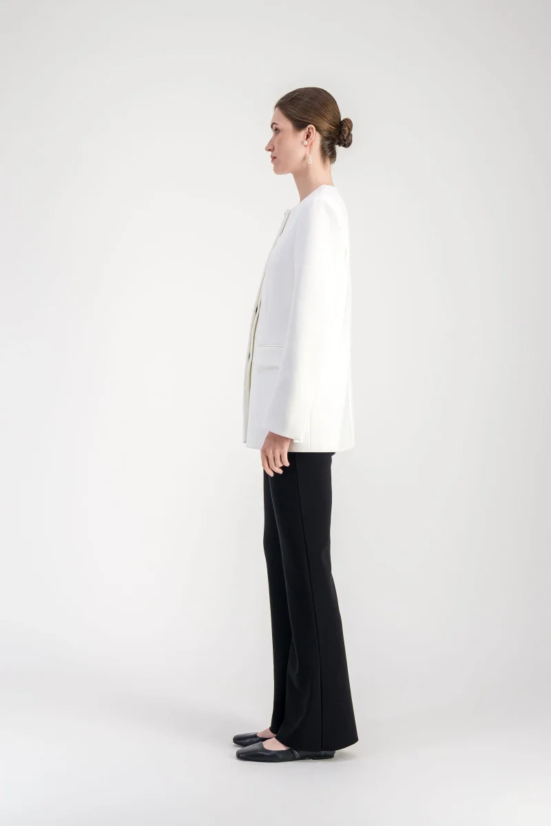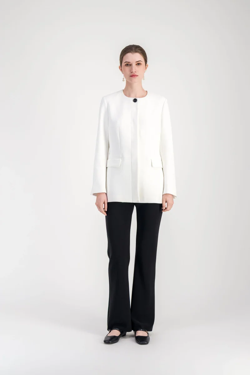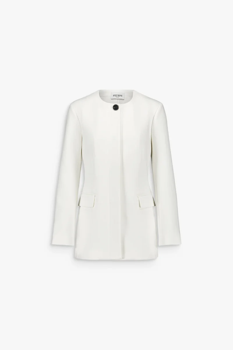Veste cintrée blanc cassé à col rond