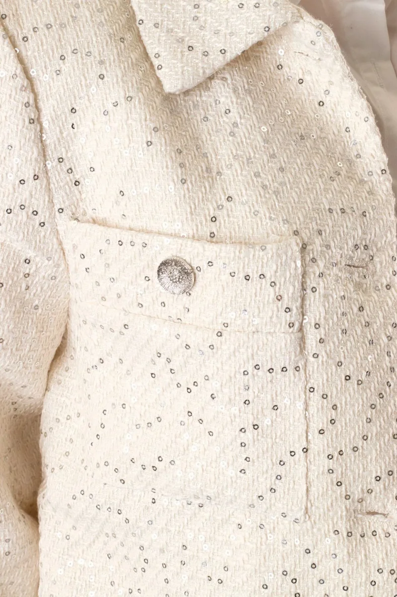 Soyez le premier à laisser votre avis sur “Veste courte en tweed blanc à sequins”