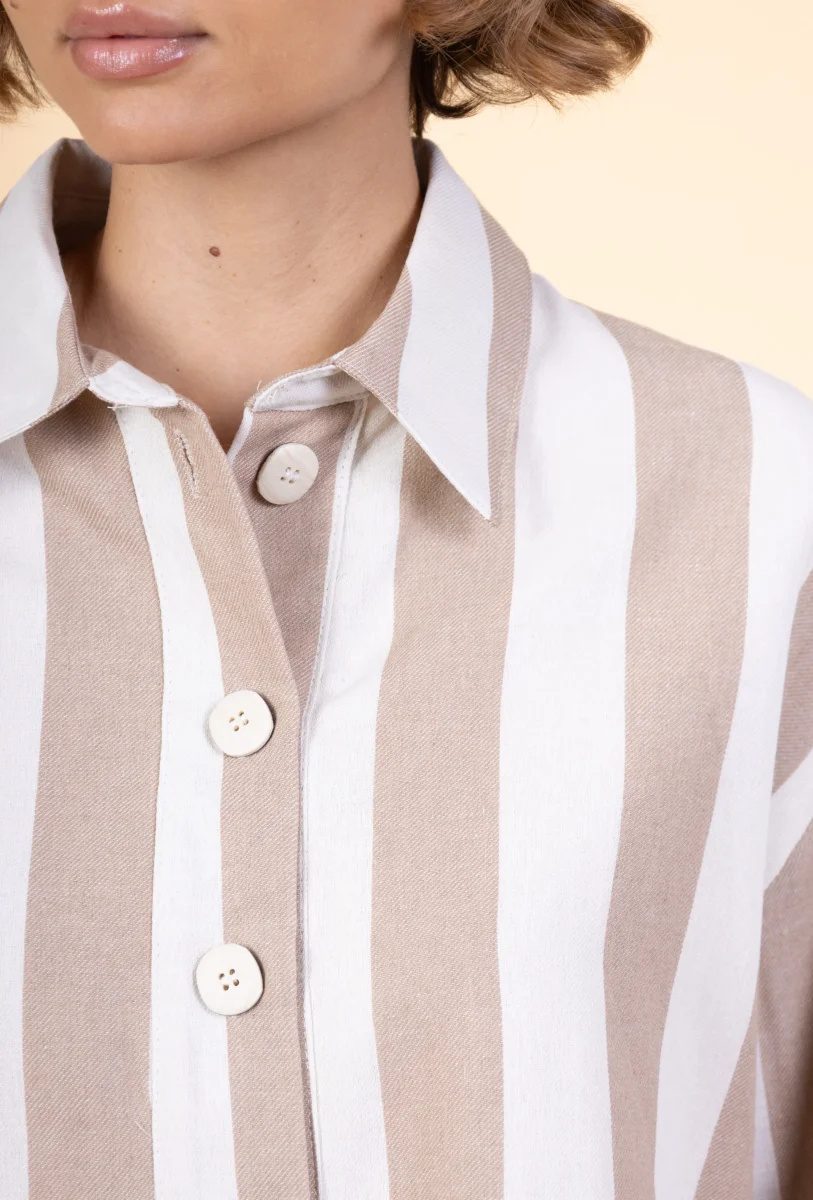 La veste est composée à 50% de coton et 50% de viscose.