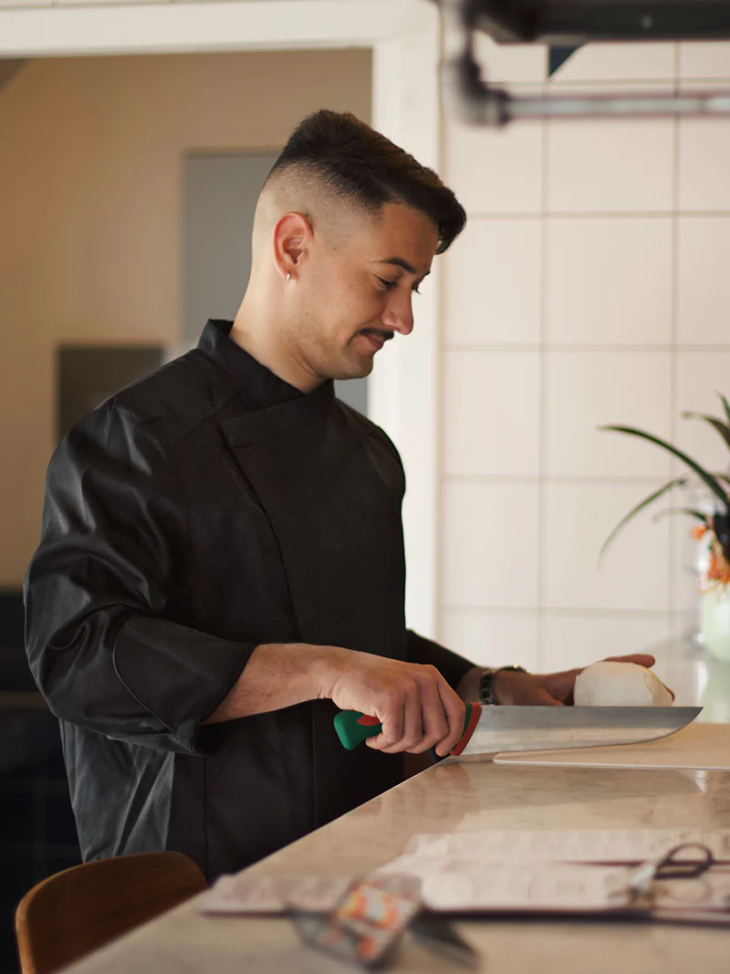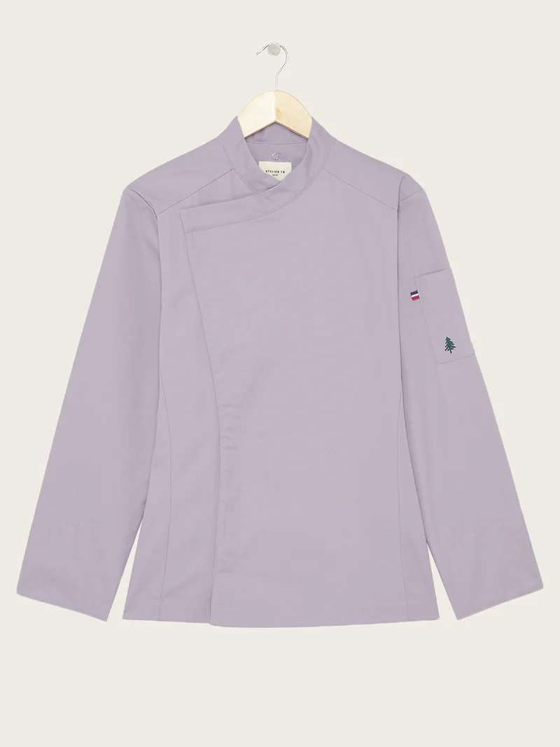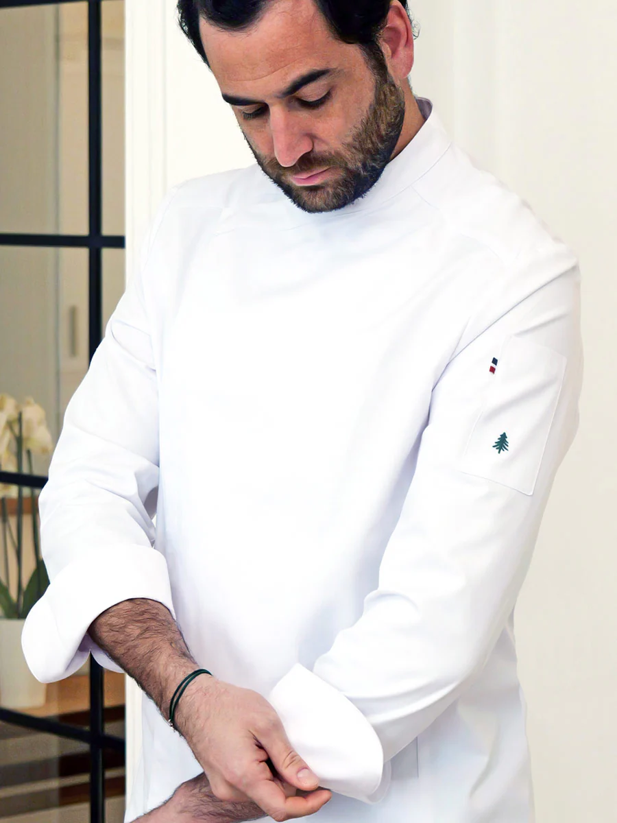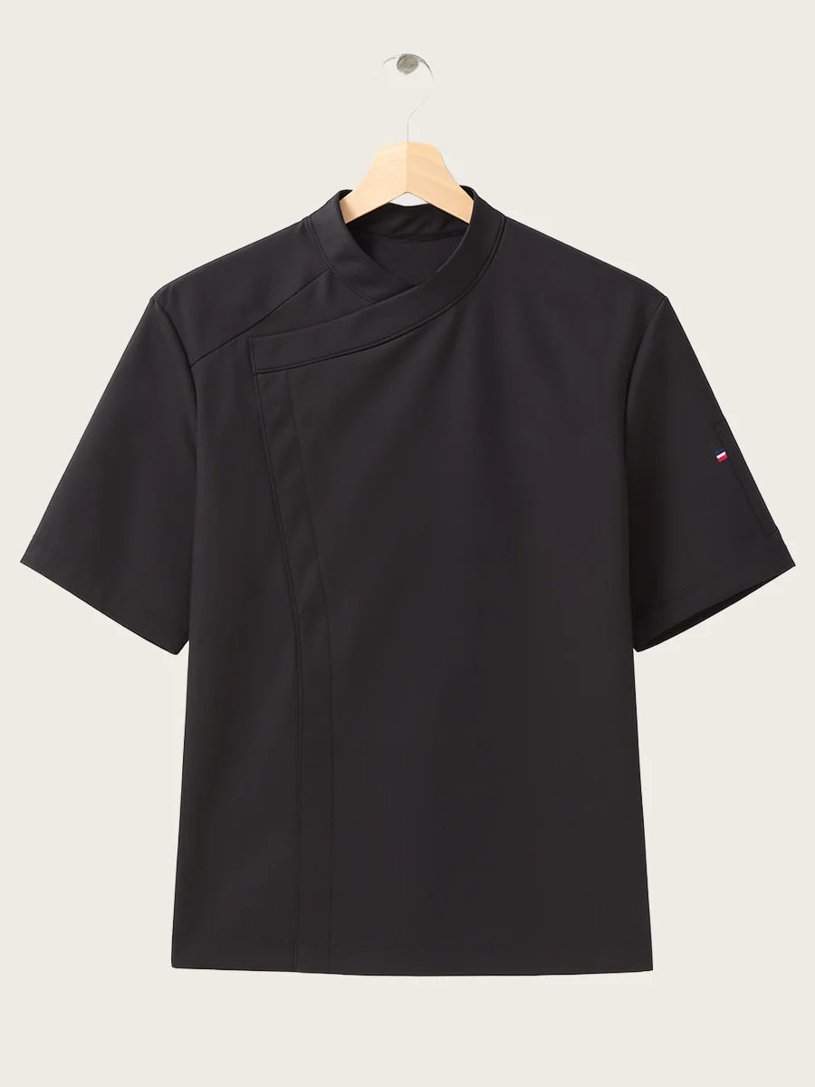Veste de cuisine homme en polycoton avec fermeture asymétrique.