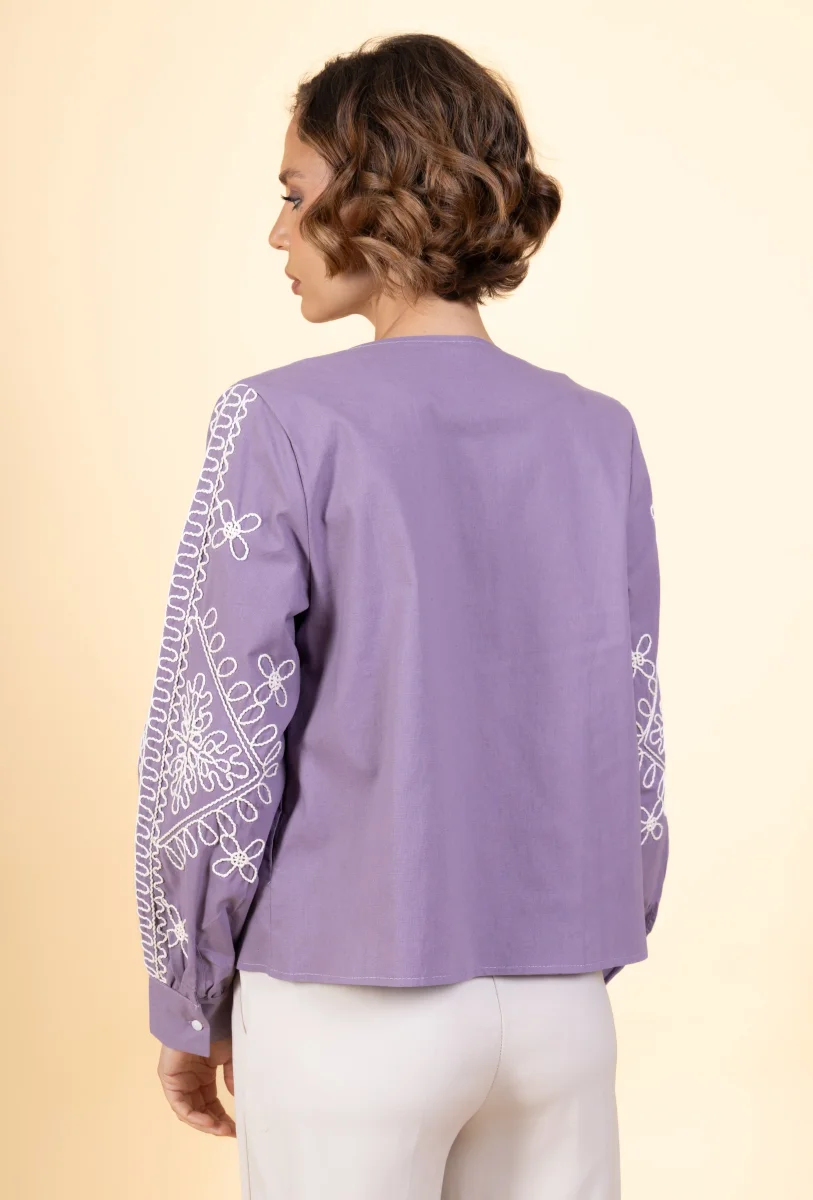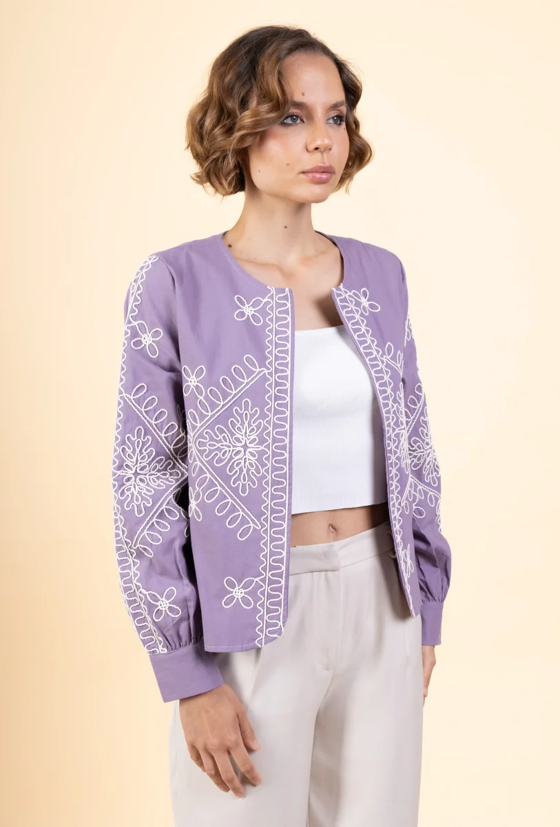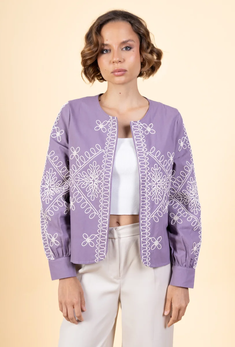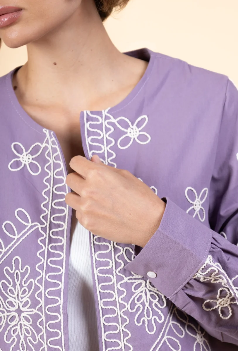 Veste Marthe • Manches longues • Col rond • Sans fermeture • Broderies Matière & EntretienLa veste est composée à 100% de coton.Préférez un lavage en machine à 30°, programme délicat.Séchage et repassage à faible température.Evitez le sèche linge !